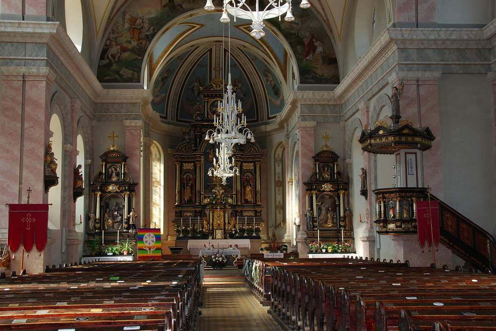 1427 wurde sie von Hussiten zerstört, 1441 wurde damit begonnen, die niedergebrannte Pfarrkirche wieder aufzubauen. Im Jahre 1710 wurde die Kirche barockisiert und neu eingerichtet.