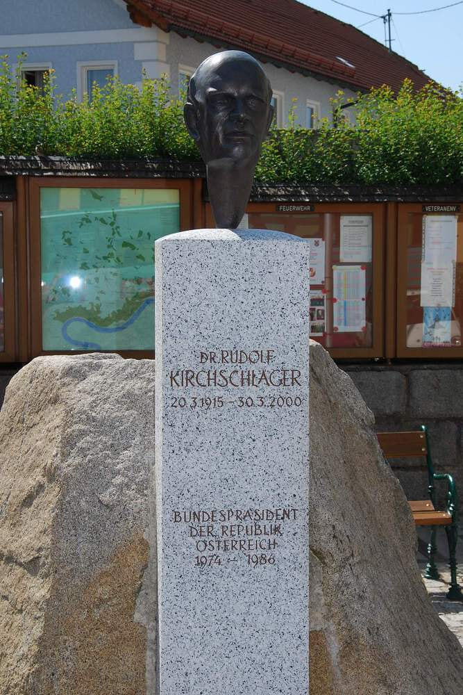 Weiter ging es zum „Mühlviertler Dom“ nach Niederkappel. Die gotische Kirche aus den Jahren 1404-1411 war im 19. Jahrhundert zu klein geworden. So wurde der Ruf nach einem Kirchenneubau immer lauter. Der Umbau der Kirche erfolgte in den Jahren 1890-1895. Der Pfarr- und Kirchenpatron ist der hl. Apostel Andreas (auf dem Foto 4. Reihe links betreibt Pfarrer Bell keine Kung Fu-Übungen, sondern stellt das Andreas-Kreuz nach). Niederkappel ist auch die Taufgemeinde vom ehemaligen Bundespräsidenten Dr. Rudolf Kirchschläger. Vor der Kirche wurde für ihn ein Gedenkstein errichtet und im Dom erinnert eine Gedenktafel an ihn.