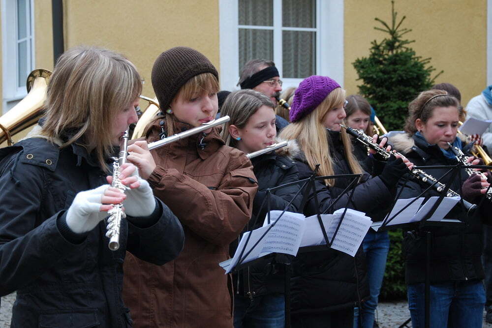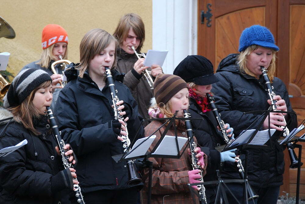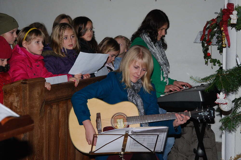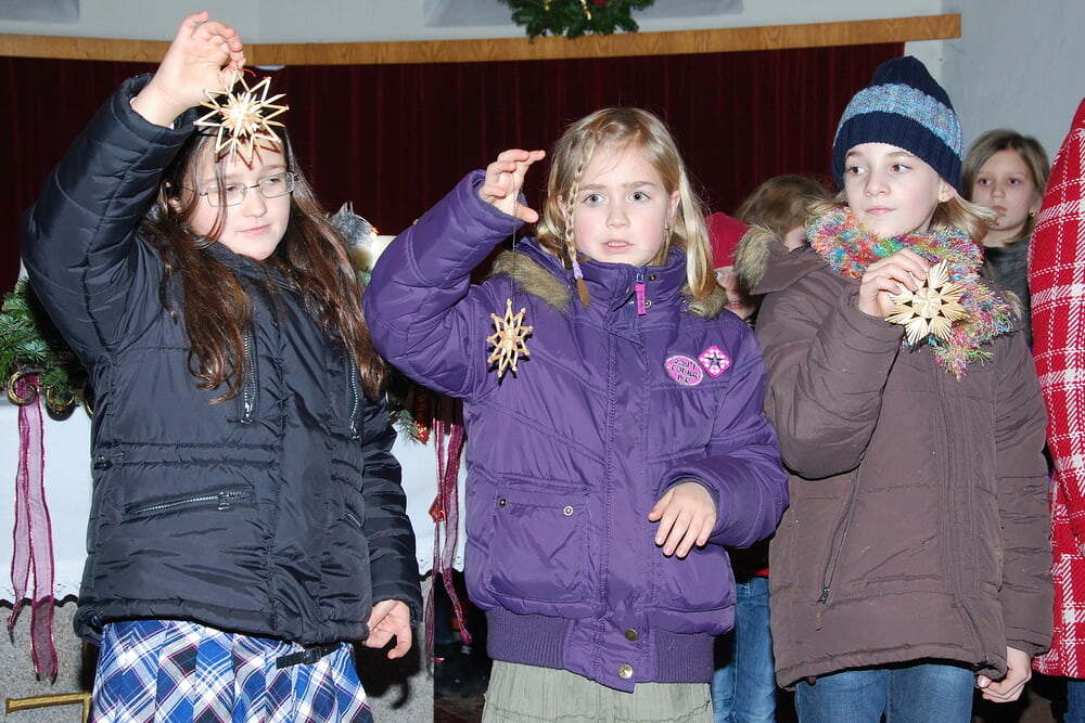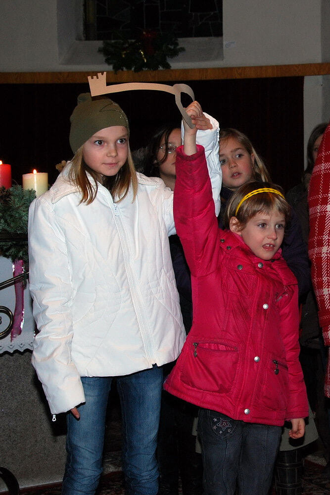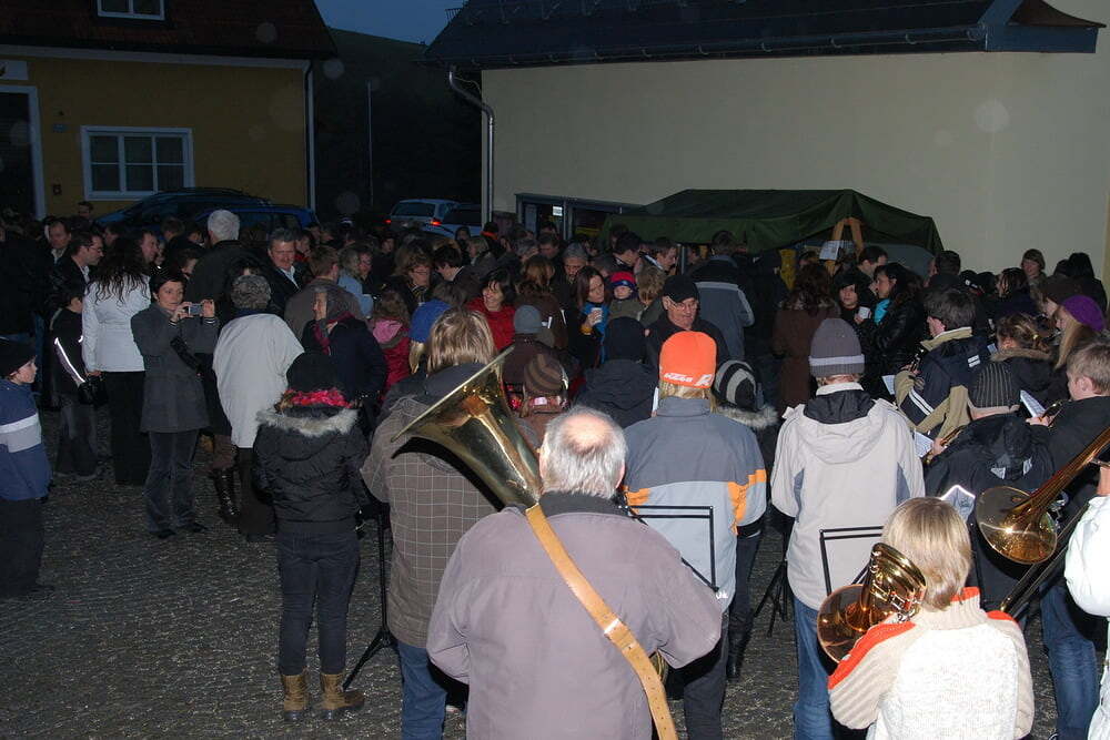 Für die musikalische Umrahmung vor und nach der Feier sorgten wieder die Jungmusiker (gemeinsam mit einigen Junggebliebenen) des Musikvereins Lacken. Im Anschluss an die Krippenfeier haben Kinder und Erwachsene jene Sterne in die Krippe gelegt, die sie bei der Adventkranzsegnung erhalten haben.