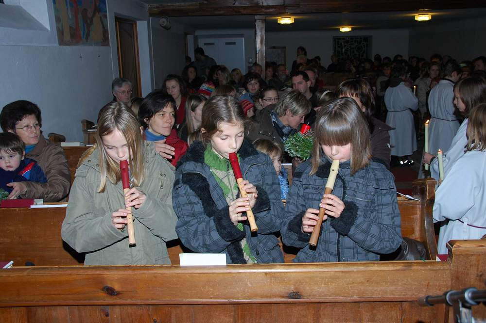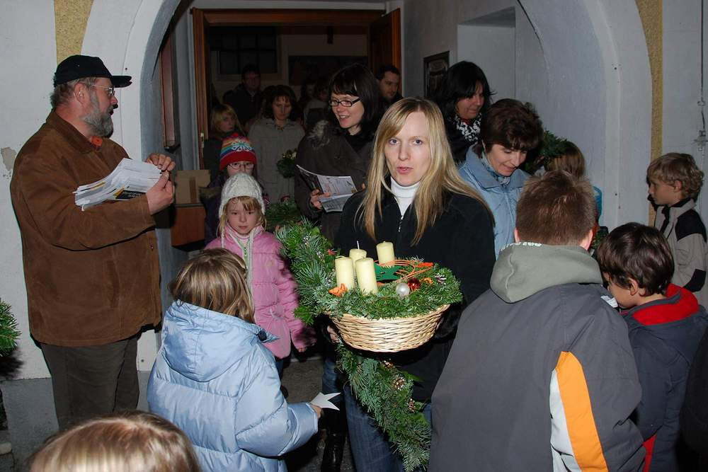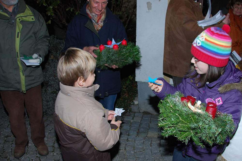 Die Adventkranzsegnung und das gemeinsame Entzünden der ersten Adventkranzkerze in der dunklen Kirche, die Fürbitten und Segensgebete – aus vielen Beiträgen wurde eine stimmungsvolle Feier, die noch bis Weihnachten hin wirken wird. Wie in den Jahren zuvor hatten die Jungscharkinder wunderschöne Sterne gebastelt, und diese Sterne wurden an alle Kinder (die kleinen und die großen) ausgeteilt, die sie dann bei der Krippenfeier am 24. Dezember als kleines Geschenk für Jesus zur Krippe tragen können. KMB-Obmann Alfred Alberer verteilte die Adventkalender der Aktion "Sei so frei".