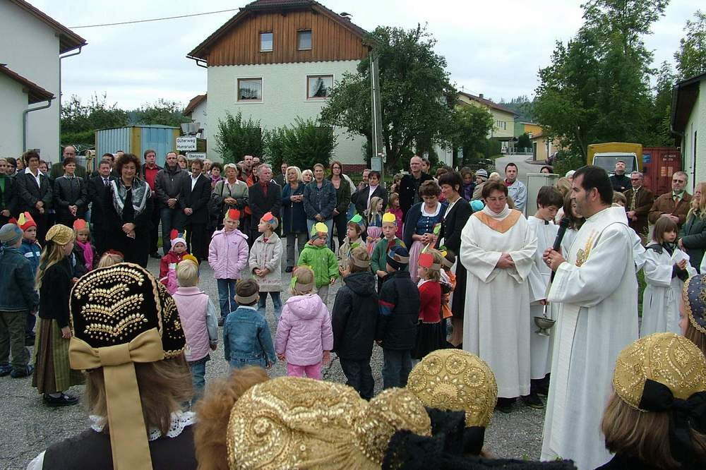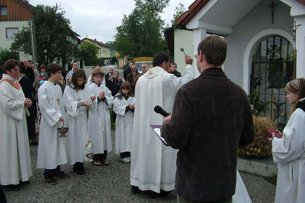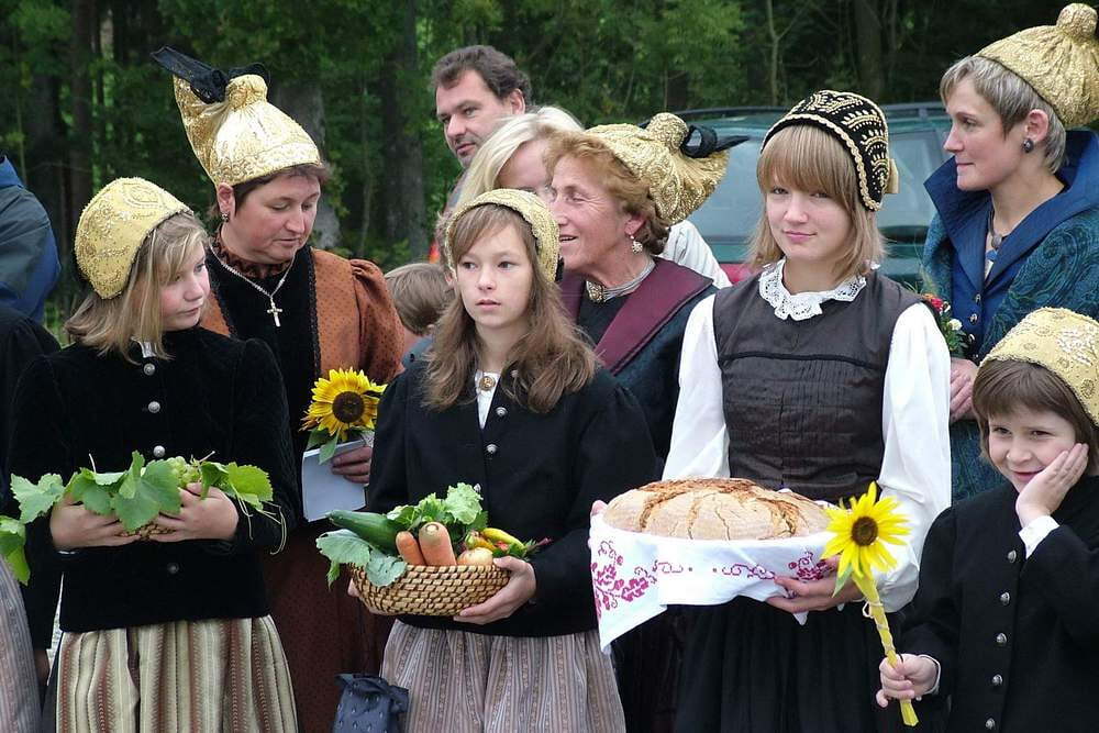 Dass schon beim Kirchenbau vor 75 Jahren in Lacken die Lackener tatkräftig mithalfen und kreativ waren im Erfinden von Möglichkeiten, wie man das Geld für den Bau einer eigenen Kirche heranschaffen könnte, erwähnte Pfarrer Reinhard Bell beim Beginn des Erntedankfestes, zu dem sich alle bei der Ortskapelle versammelt hatten. Die Kindergartenkinder zauberten mit Liedern und Tanz ein Lächeln auf alle Gesichter - selbst die Wolken hielten den Regen fest oben.