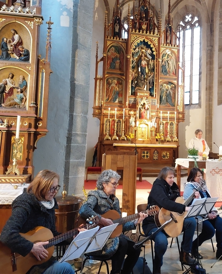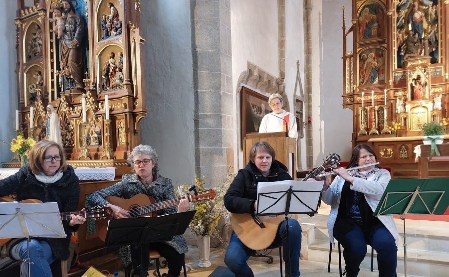Begleitet wurde der Gottesdienst von der kfb Band – dabei wurde auch „Wunder gescheh´n“ von Nena gemeinsam gesungen.