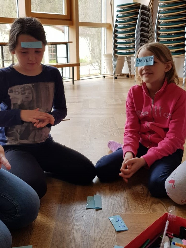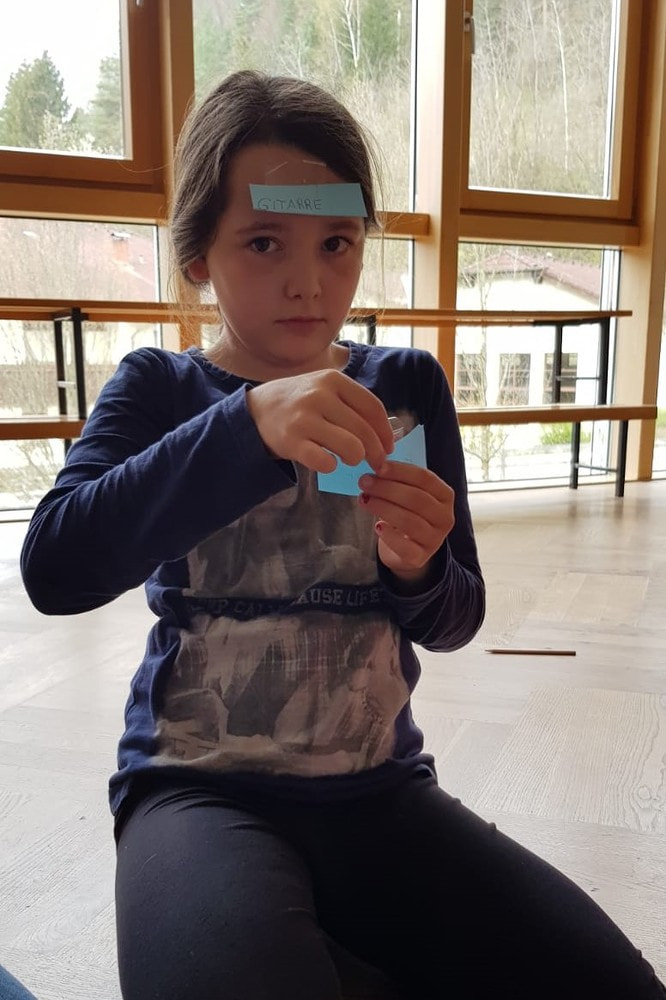 Spannend war es auch, das Musikinstrument zu erraten, das man auf der Stirn hatte, v.a. wenn die anderen nur ja oder nein sagen. Aber auch diese Herausforderung haben alle geschafft.