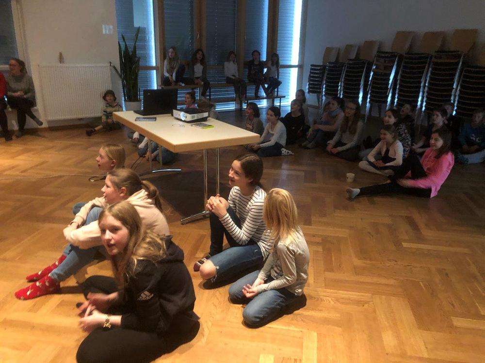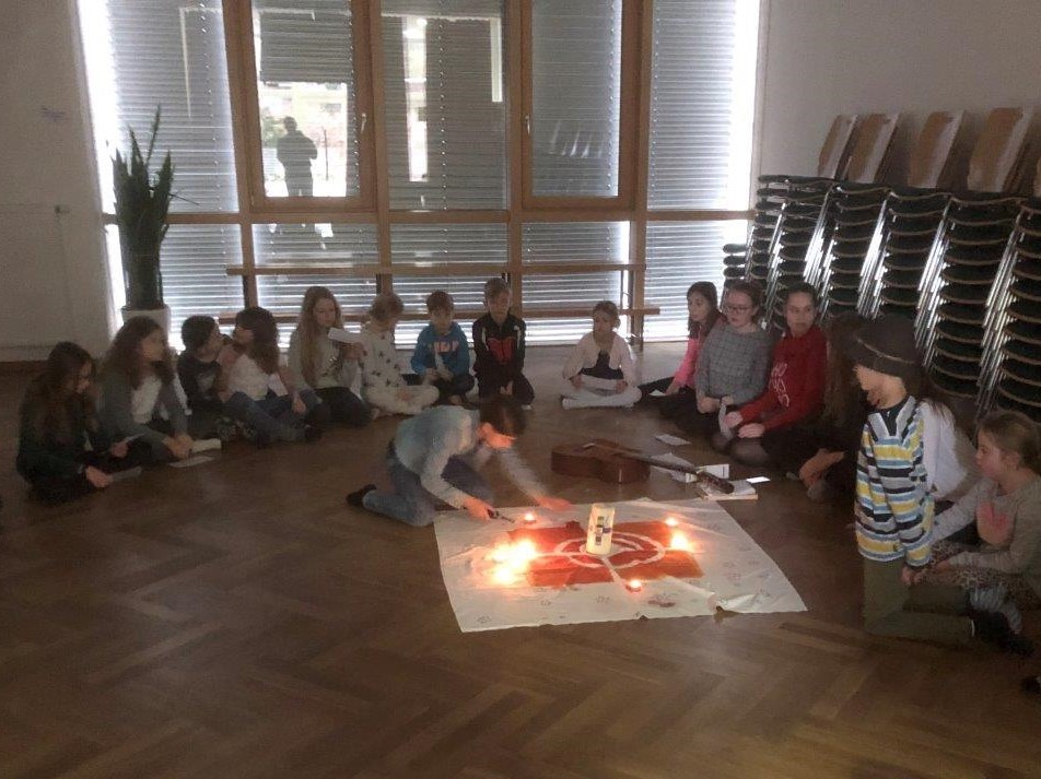 Diese Jungscharstunde beinhaltete gemeinsames Singen, einen Weihnachtfilm und eine kräftige Stärkung, welche aus Schokospießen, Keksen und Tee bestand. Zu guter Letzt wurden noch Weihnachtskaraoke und Weihnachtsspiele gemeinsam durchgeführt.