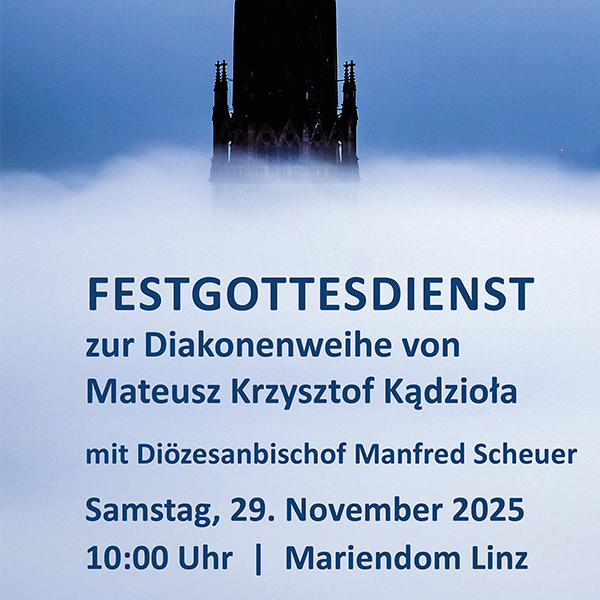 Am Samstag, 29. November wird Mateusz Krzysztof Kądzioła im Mariendom von Bischof Manfred Scheuer zum Diakon geweiht.