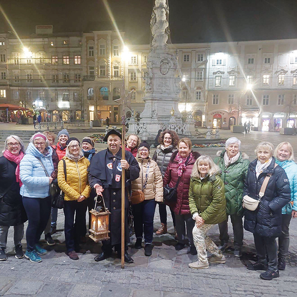 „Hört ihr leut‘ und lasst euch sagen, ...“ so klang es im Mittelater auch durch die Gassen von Linz. Humorvolle Geschichten und Anektoten dazu erzählte Nachtwächter Wolfgang bei einem interessanten Spaziergang zu den fünf Stadttoren in der Altstadt. Es war ein stimmungsvoller Abend für die Damen des Frauenmosaik von Leonding-St.Michael.