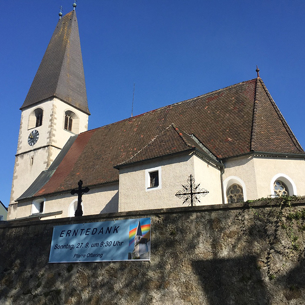 Da die Pfarre Oftering bereits um 1150 errichtet worden war, dürfte dies nicht der erste Kirchenbau in Oftering sein. Im Jahr 2020 wurde die Renovierung des Innenraumes abgeschlossen, der wertvolle Hochaltar erfuhr eine fachgerechte Restaurierung. Unsere Kirche mag auf den ersten Blick etwas unscheinbar wirken, doch bei genauerem Hinsehen entdeckt man viele interessante Details. Das Gleiche gilt auch für unser Pfarrleben. Selbst wenn gesellschaftliche Veränderungen, der Strukturwandel und die Pandemie so manche Lücke in das bisherige Gefüge gerissen haben, so gibt es doch immer noch viele Aktivitäten in der Pfarre, die sich sehen lassen können. Klein, aber fein und nahe bei den Menschen, das zeichnet die Pfarre Oftering aus.
