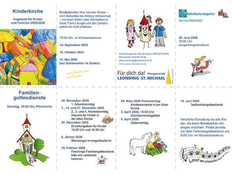 Ein Folder mit allen Kinderkirche-Terminen 2025/2026 wird im September