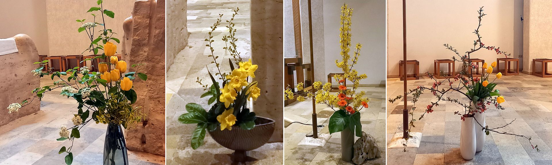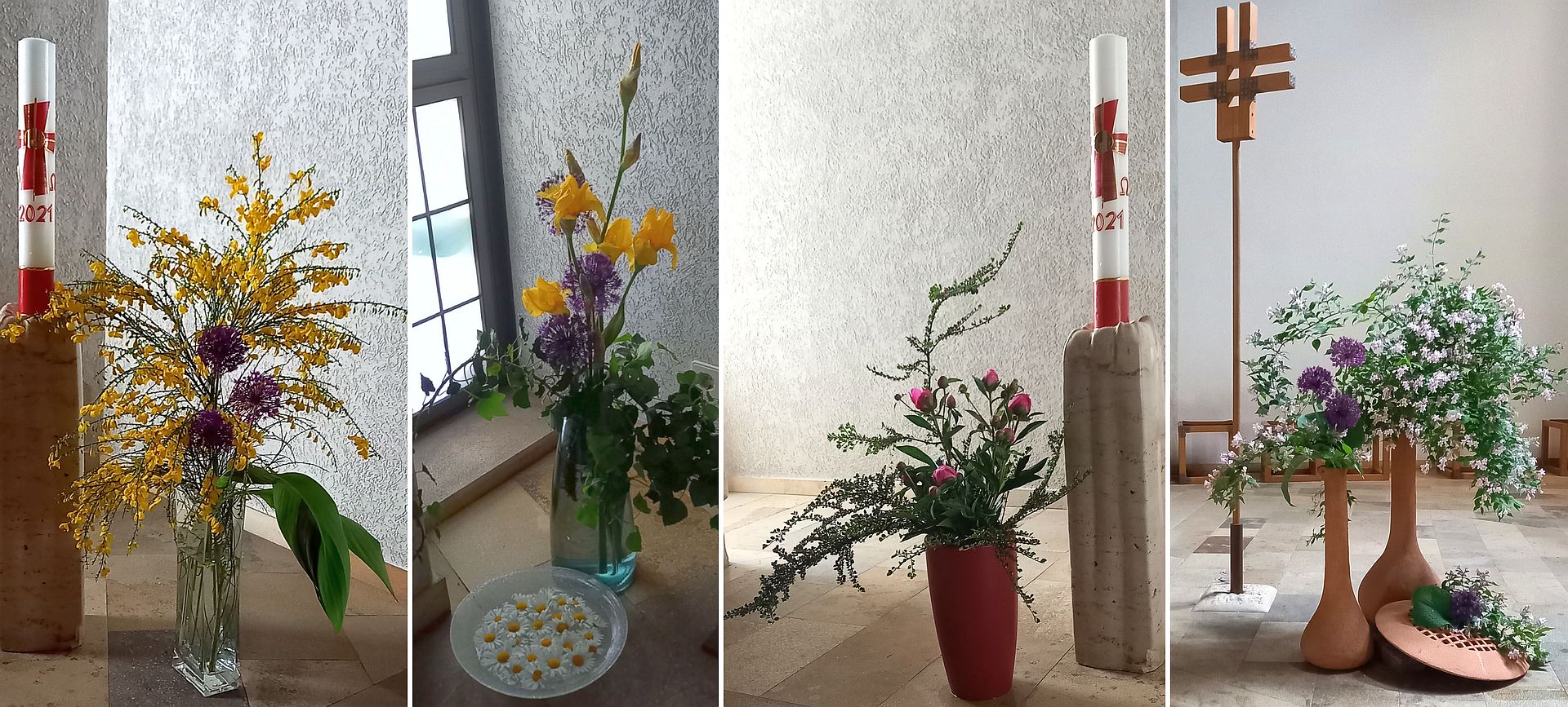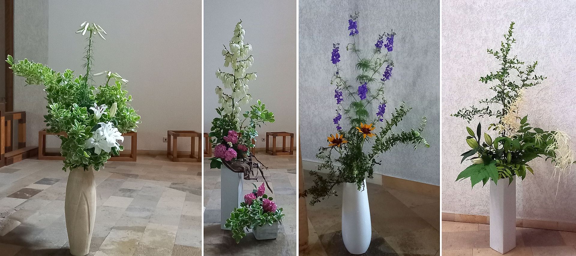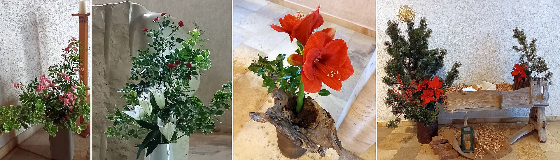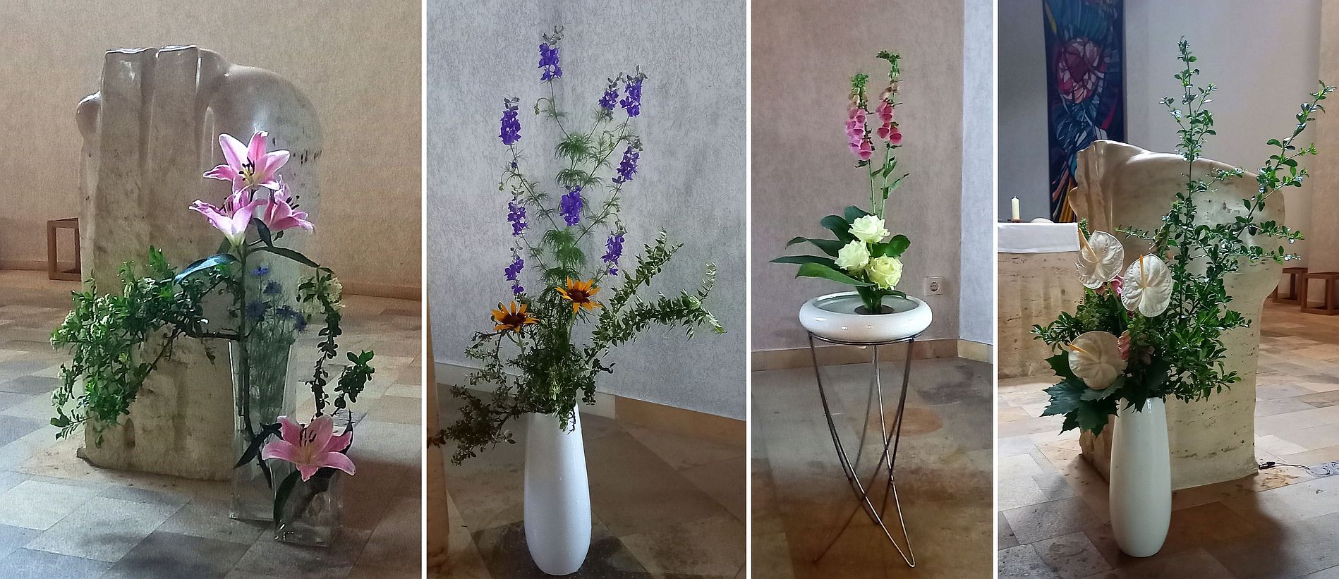 Vorne im Altarraum beim Kreuz, beim Ambo, in der Kapelle, beim Kircheneingang ... Woche für Woche überraschen und erfreuen neue Kreationen die Kirchenbesucher*innen.