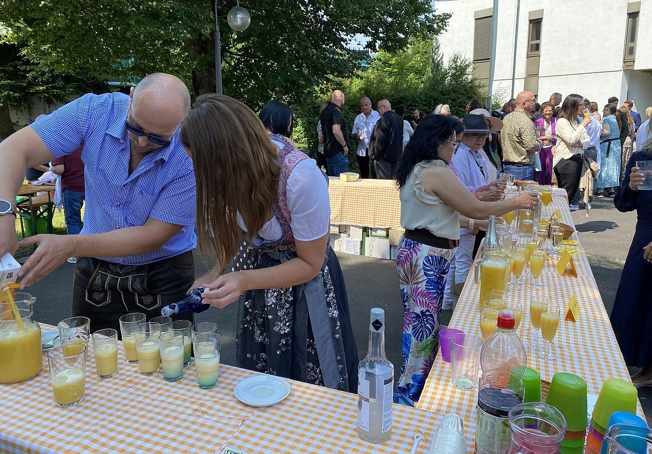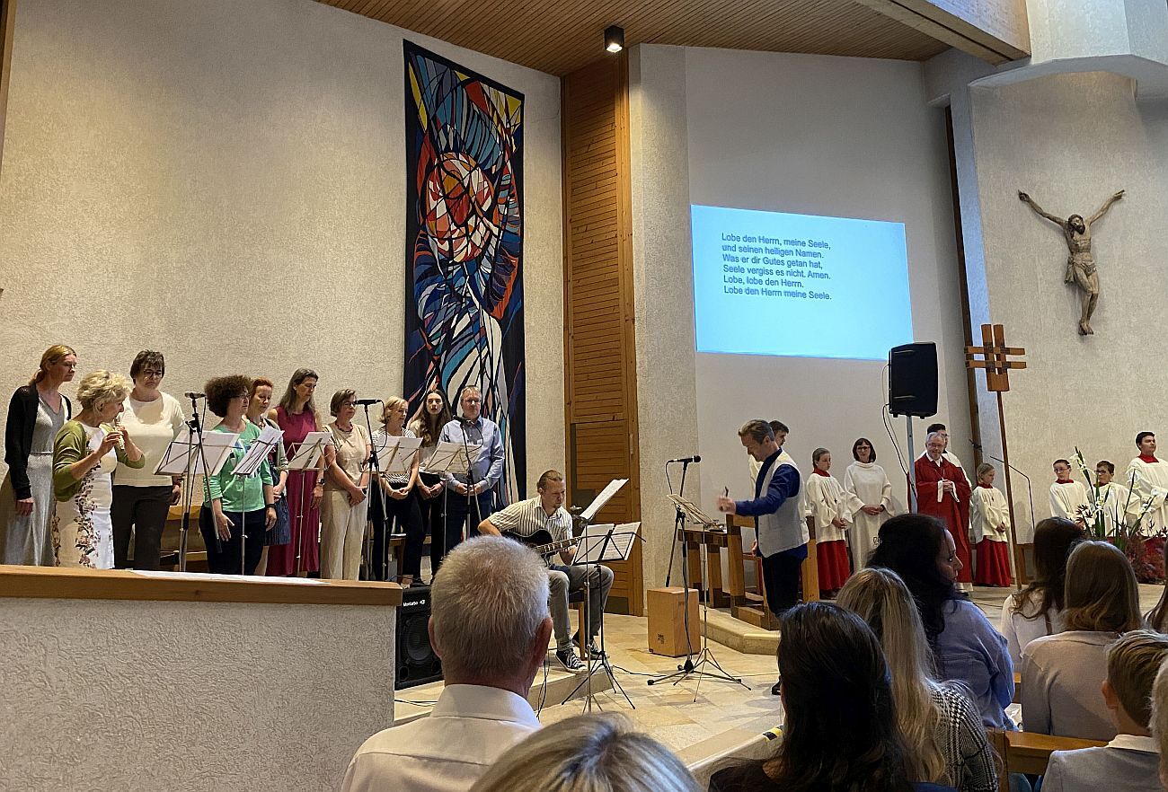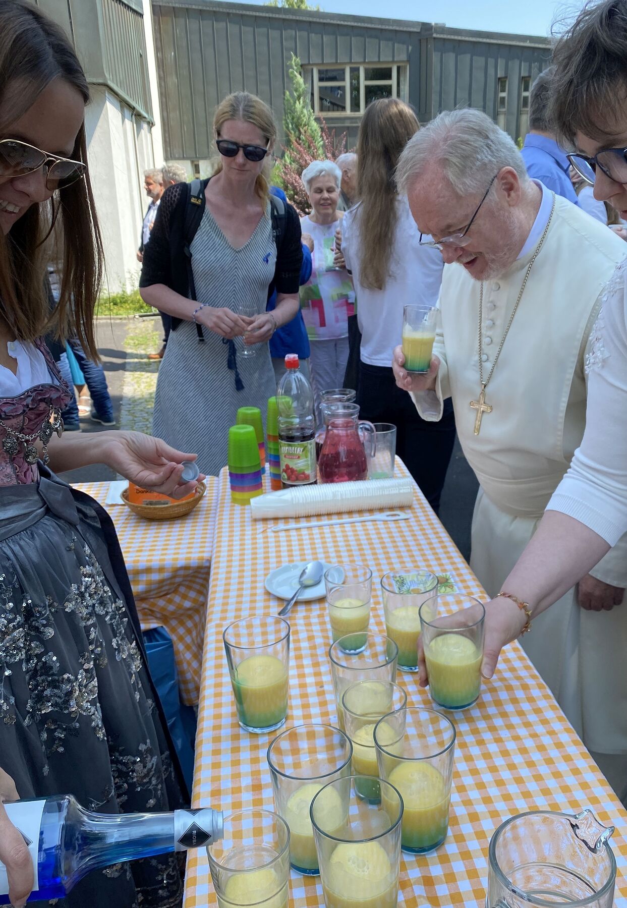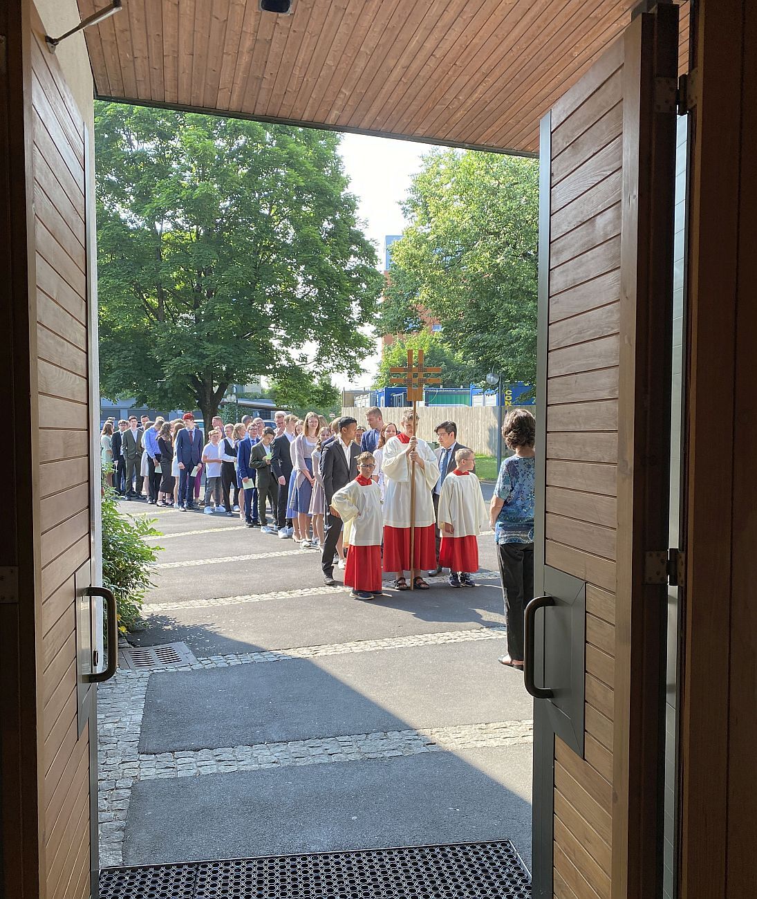 Für die schwungvolle Musik beim Gottesdienst sorgte die Band, dafür ein herzliches Danke. Am Pfarrplatz gab es anschließend Kaffee und Getränke sowie alkoholfreie Cocktails – danke der philippinischen Gemeinde und dem JUZ Plateau für dieses Angebot! So konnten viele der Gottesdienstbesucher:innen und vor allem die Familien in angenehmer Atmosphäre ein paar Worte miteinander plaudern, während Fotograf Krinninger noch die Gruppenfotos der Firmlinge vor dem Altar machte.