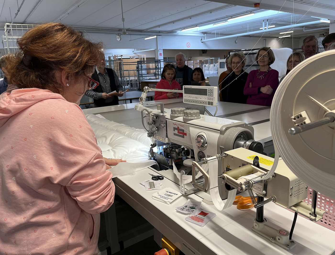 Gleich zu Beginn erzählte Betten Reiter Chef DI Peter Hildebrand, dass der Betrieb 1992 nach Leonding kam und seitdem hier seine Steppwaren erzeugt. Matrazen, Vorhangstoffe usw. werden zugekauft. Die Firma ist Fairtrade-Partner und hat das GOTS Qualitätssiegel, verarbeitet neben Naturrohstoffen auch zukunftsorientiert naNea-Material und setzt auf freundliche Beratungsqualität im Verkauf. Mit dem Produktionsverantwortlichen Arno Taubner konnten wir einen Rundgang durch die Hallen machen – und er beantwortete gerne alle Fragen!
