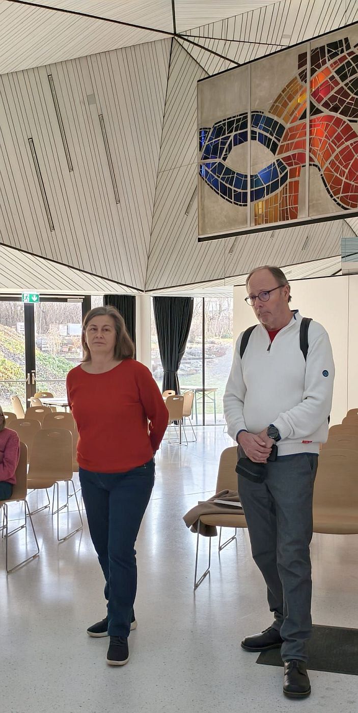 Die leitende Seelsorgerin Silvia Aichmayr führte uns durchs Haus, erzählte von der Entstehungs- und Entwicklungsgeschichte des Seelsorgeortes am Gelände und stellte die aktuelle Arbeit der Betriebsseelsorge vor: nachgehende Seelsorge ins Werk hinein, (pfarr)gemeindliches Leben im Haus, Vernetzungspartnerin sein für ein gutes Leben in der Arbeitswelt, als Bildungsort zur Verfügung stehen und vor allem eine wichtige "Oase für Leib und Seele" bieten, offen für alle Menschen, die in diesem riesigen Industriegelände arbeiten.