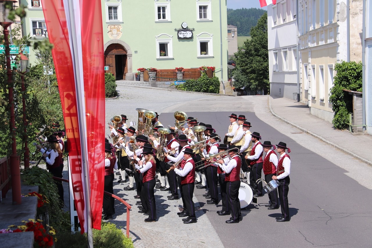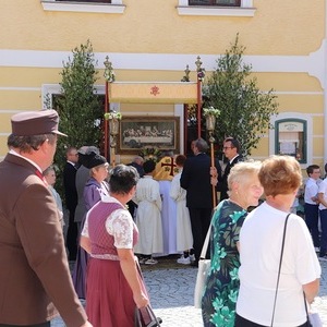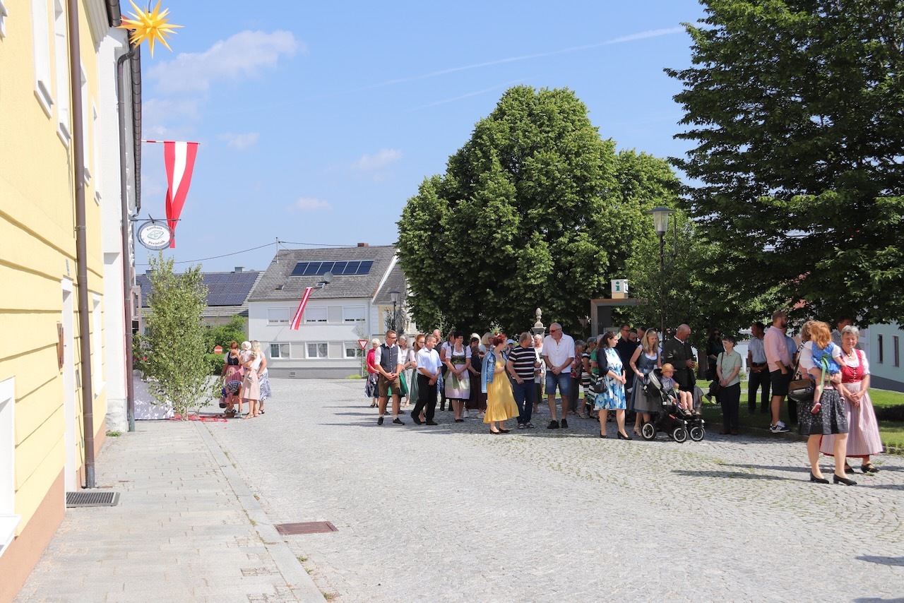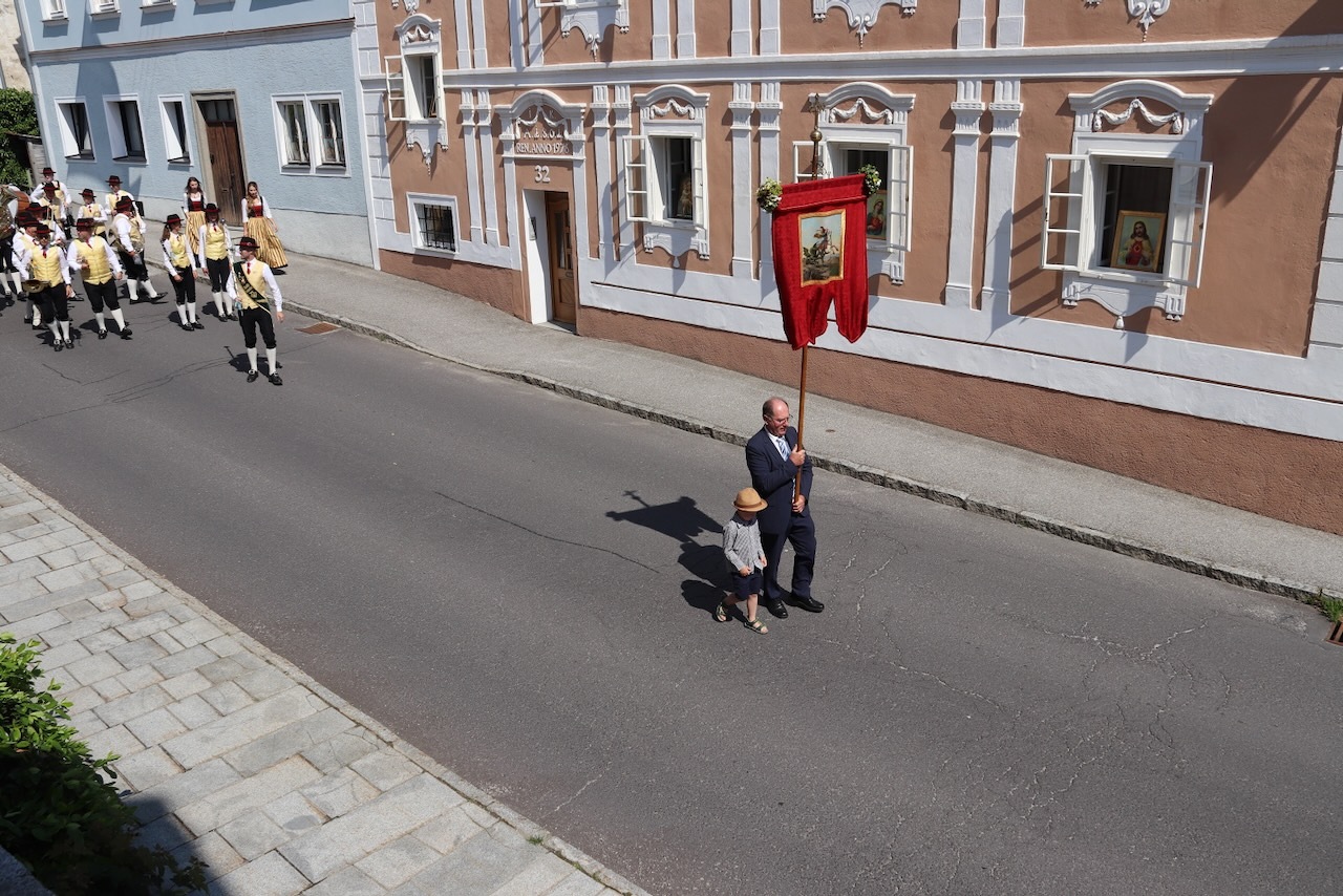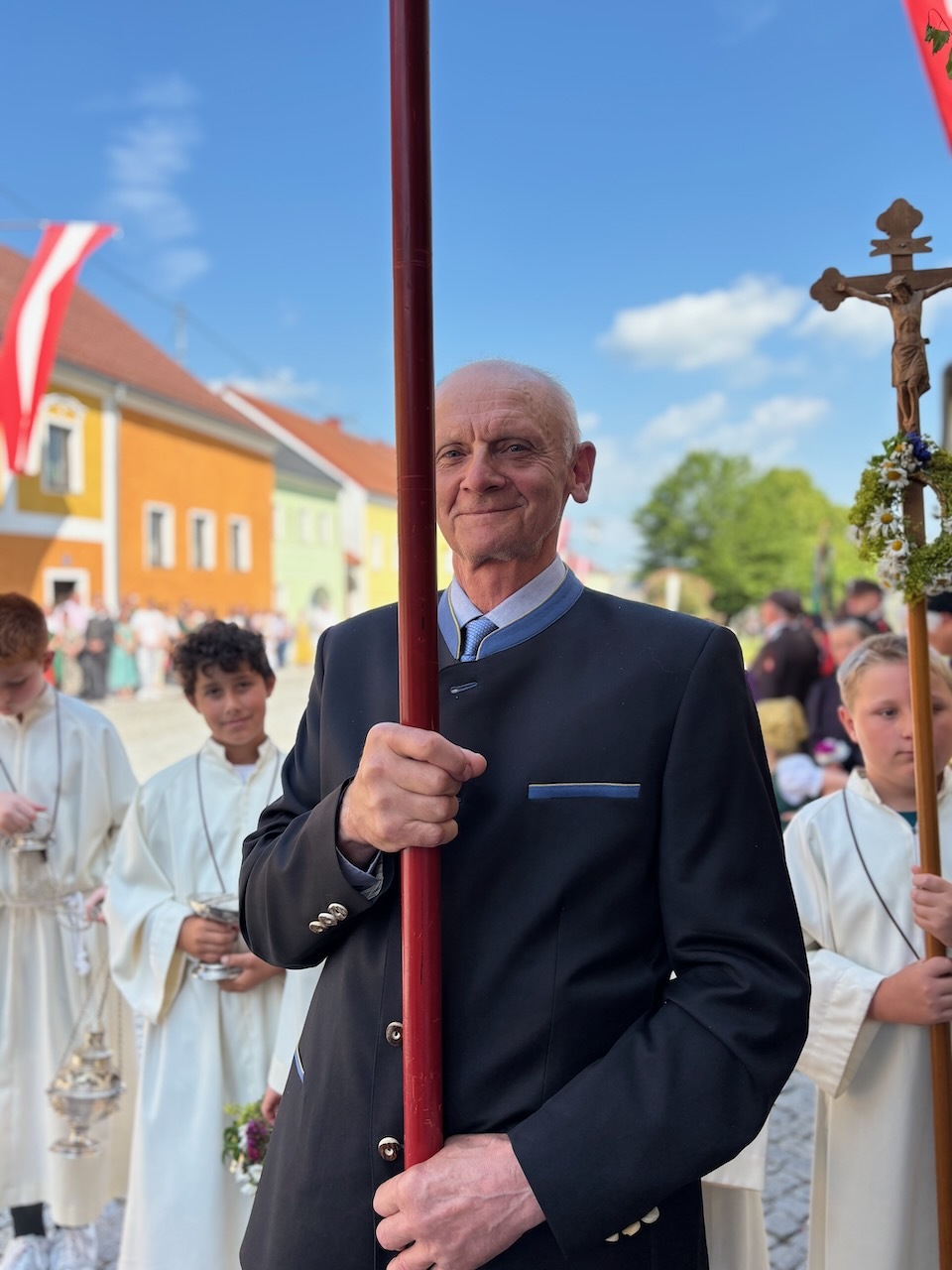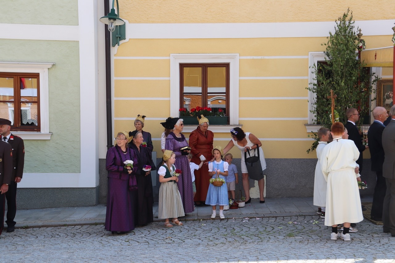 Die Prozession war dank des herrlichen Wetters und des Einsatzes vieler Menschen besonders schön - ein Dank an alle Beteiligten: Allen voran Pfarrer Raphael Golianek, der vorab schon in Rainbach Gottesdienst feierte. Danke an die Musikkapellen und an die Musikgruppe rund um Elisabeth Schlechtl, die den Gottesdienst musikalisch gestaltet hat, an die Erstkommunionskinder, an die Mesnerin, die Mesner, an die Ministranten und den liturgischen Dienst unter Pfarrgemeinderatsobfrau Elisabeth Wirtl. Ein Dank geht auch an die Herren der Marktkommune Leopoldschlag und deren Obmann Josef Birngruber, der alljährlich das Himmeltragen organisiert.