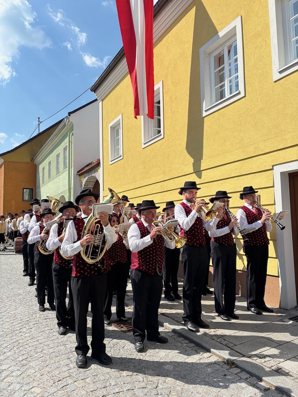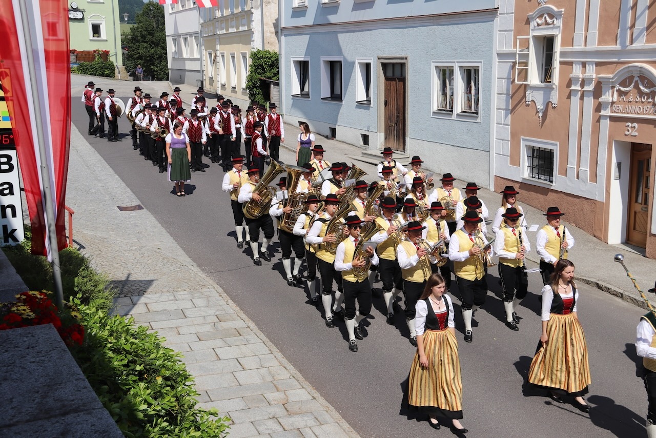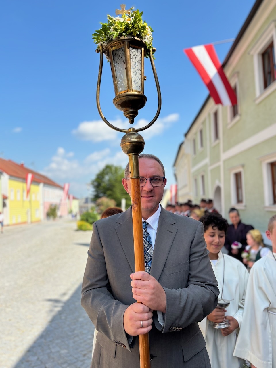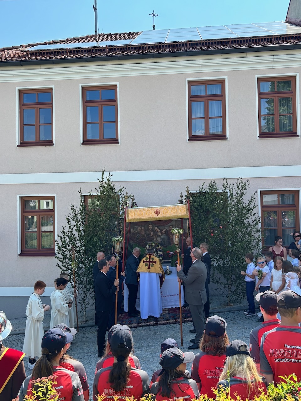 Die Prozession war dank des herrlichen Wetters und des Einsatzes vieler Menschen besonders schön - ein Dank an alle Beteiligten: Allen voran Pfarrer Raphael Golianek, der vorab schon in Rainbach Gottesdienst feierte. Danke an die Musikkapellen und an die Musikgruppe rund um Elisabeth Schlechtl, die den Gottesdienst musikalisch gestaltet hat, an die Erstkommunionskinder, an die Mesnerin, die Mesner, an die Ministranten und den liturgischen Dienst unter Pfarrgemeinderatsobfrau Elisabeth Wirtl. Ein Dank geht auch an die Herren der Marktkommune Leopoldschlag und deren Obmann Josef Birngruber, der alljährlich das Himmeltragen organisiert.