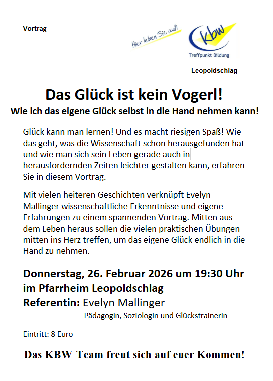Vortrag: Das Glück ist kein Vogerl!