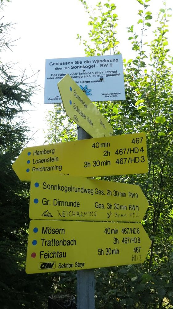 Losenstein - zum Parkplatz Hamberger Gehzeit über Sonnkogel 2 ¼ Std.