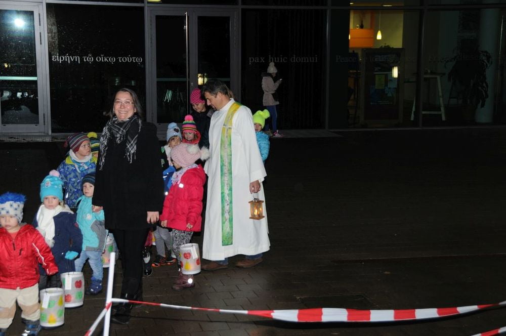 Es begann mit einer Lichterprozession vom Kindergarten zur Pfarrkirche. Im Rahmen einer Andacht wurde das Leben des Heiligen Martin spielerisch dargestellt. Der Gedanke des Teilens wurde durch das Austeilen der "Martinskipferl" zum Ausdruck gebracht und im Pfarrzentrum mit den mitgebrachten Köstlichkeiten fortgesetzt. Die gute Zusammenarbeit Kindergartenteam-Eltern-Kinder-Pfarre zeigte sich auch bei diesem Fest wieder. So kann ein Fest wirklich zum FEST werden. Es macht Freude dabei zu sein!
