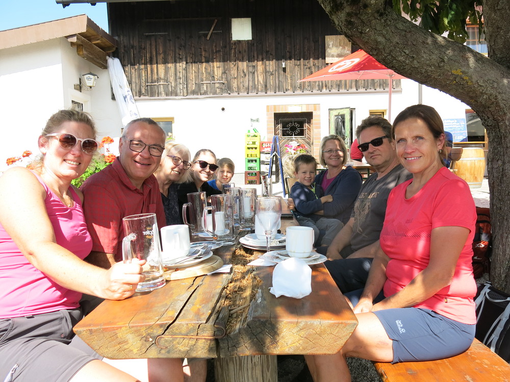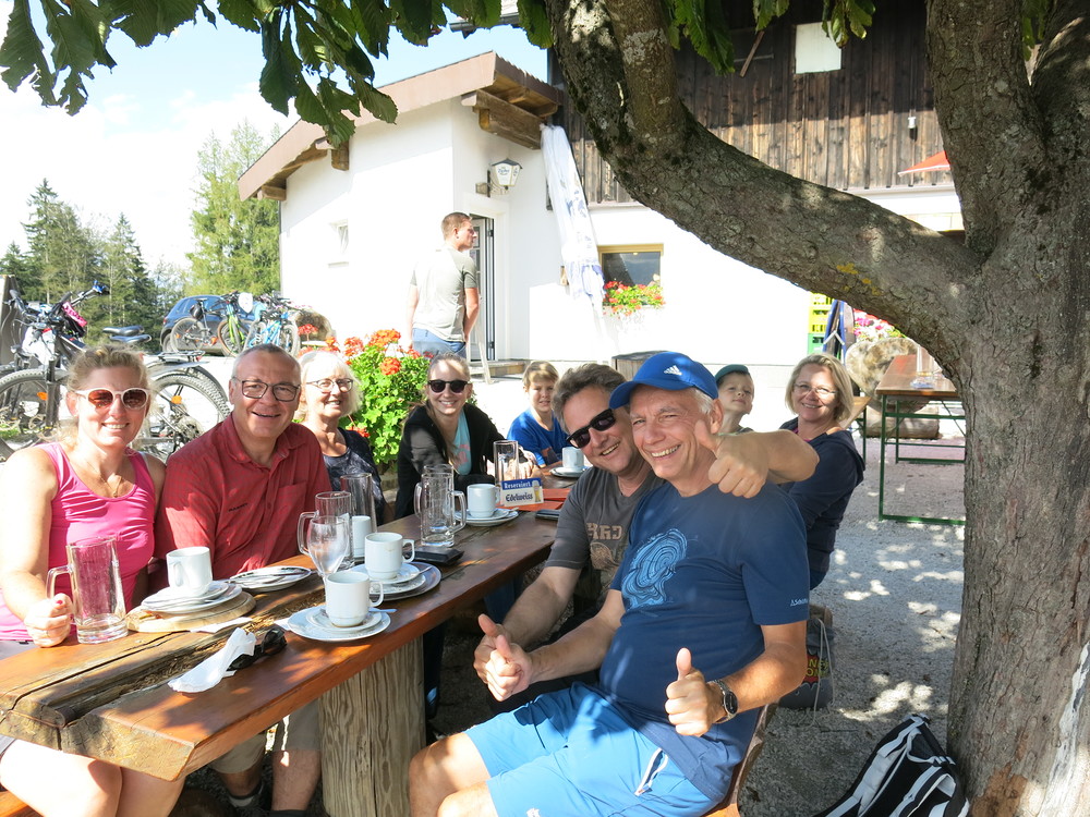 Wir wurden mit einem prachtvollen Wetter und einer tollen Aussicht belohnt. Anschließend stärkten wir uns beim nahe gelegenem Almengasthof Schwarz.
