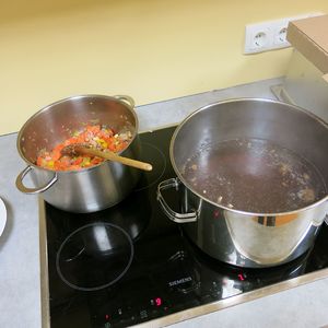 Christian kochten mit den Männer eine herrliche Erdäpfelsuppe...