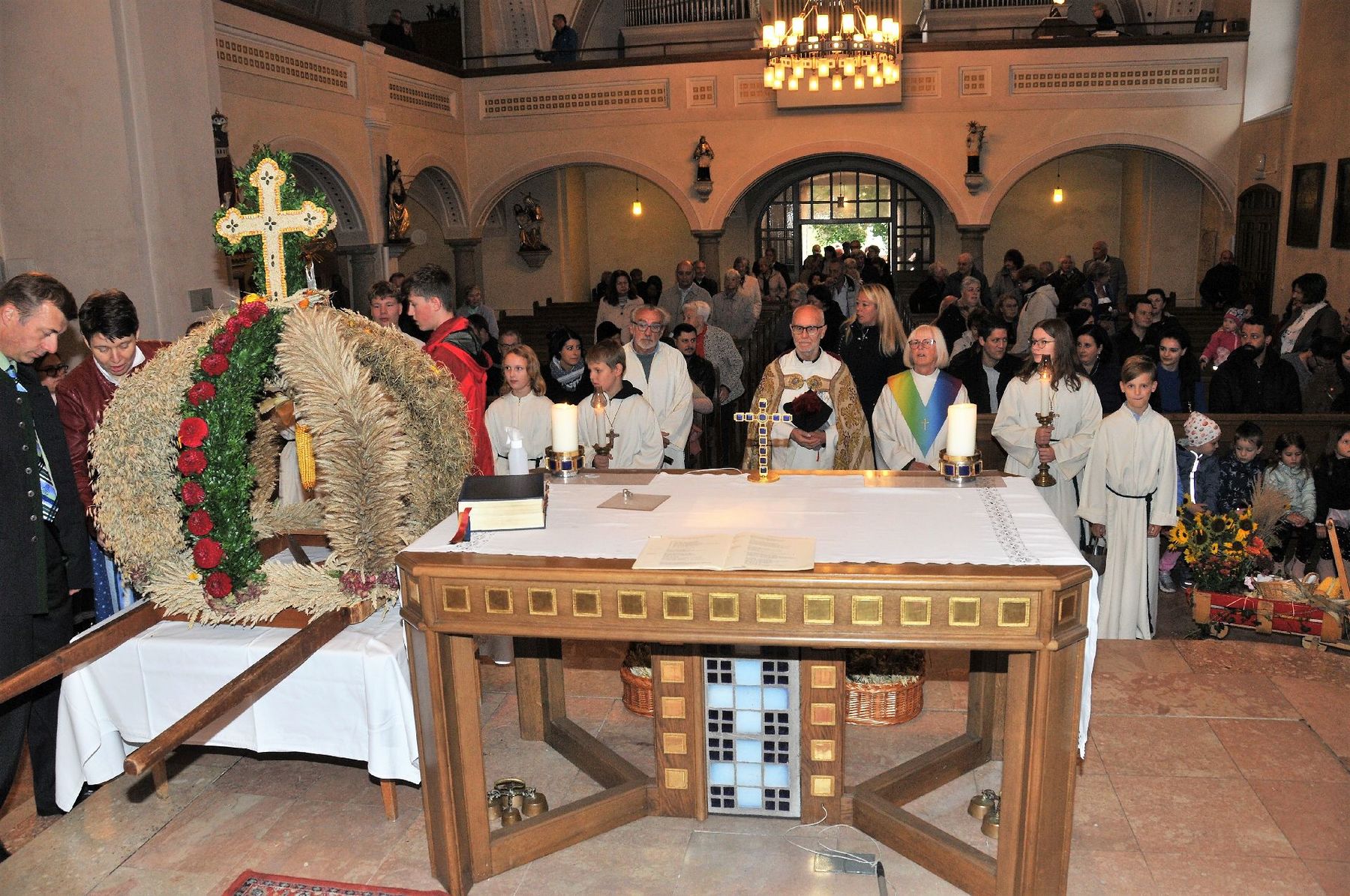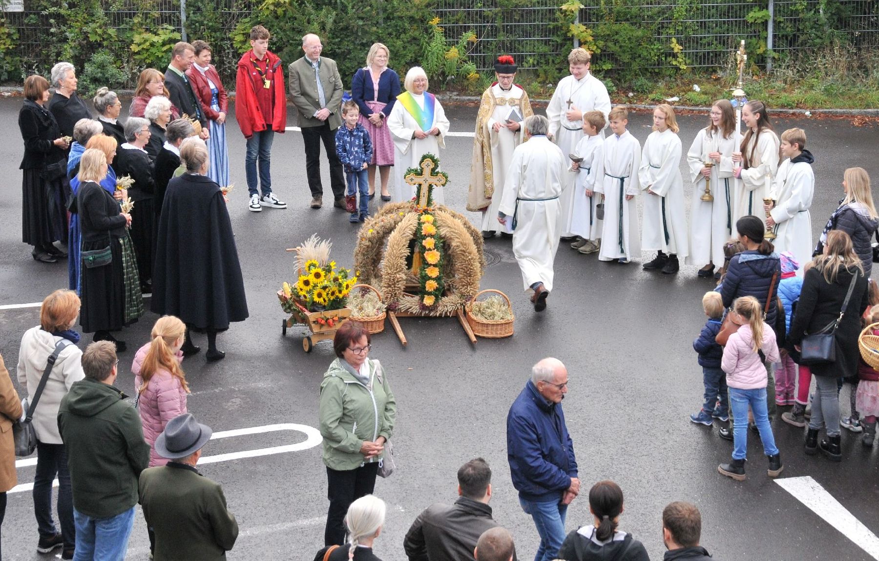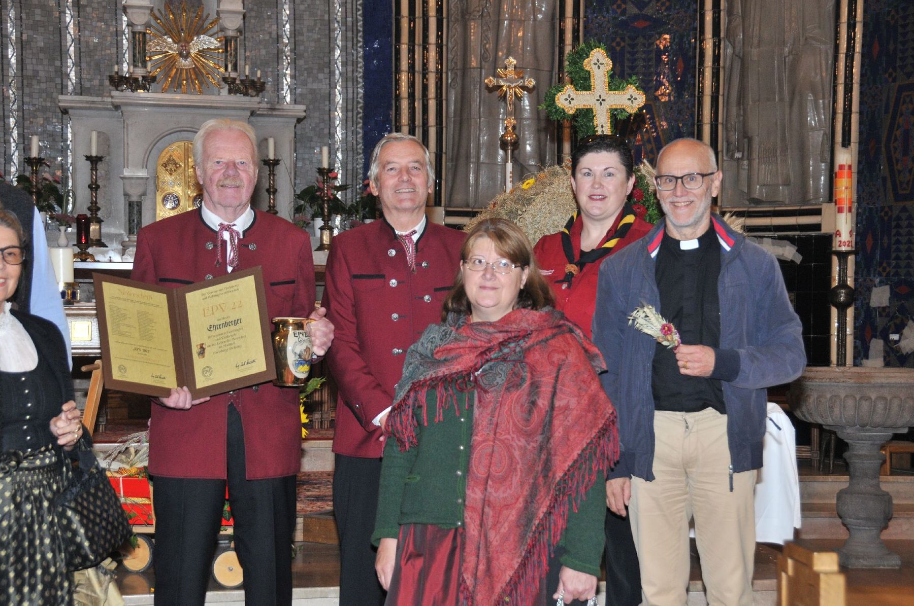 Die Erntekrone wurde am Volkshausparklatz gesegnet. Die anschließende Prozession zur Pfarrkirche wurde vom „Musikverein Ebelsberg-Pichling“ angeführt. Viele Kindergartenkinder mit ihren Familien nahmen am Erntedankfest teil. Im Rahmen der Feier in der Pfarrkirche wurde der „Goldene Krug“ an den Obmann des „Musikverein Ebelsberg-Pichling“ Gerhard Ehrenberger für seine Verdienste um das Vereinsleben in Ebelsberg-Pichling überreicht. Der Kapellmeister Josef Schütz würdigte in seinem Rückblick die jahrzehntelange aktive Tätigkeit des Geehrten im Musikverein. Karl Heinz Zöhrer gab uns Einblick in das Wesen des EPV (Ebelsberg-Pichlinger Vereine). Er würdigte auch die Tätigkeit des vor kurzem verstorbenen Gründers und Obmannes Erich Sommer. In einer kurzen Stille gedachten wir des Verstorbenen. Nach dem Lied „Hoamatland“ wurde die Feier unter den Klängen des Musikvereins am Kirchenplatz und im Pfarrzentrum fortgesetzt. Hier gilt auch der „Bauernschaft“ unser Dank für die Organisation und der Verköstigung. Und … auch der Himmel hat das Seine zum Gelingen des Festes beigetragen!