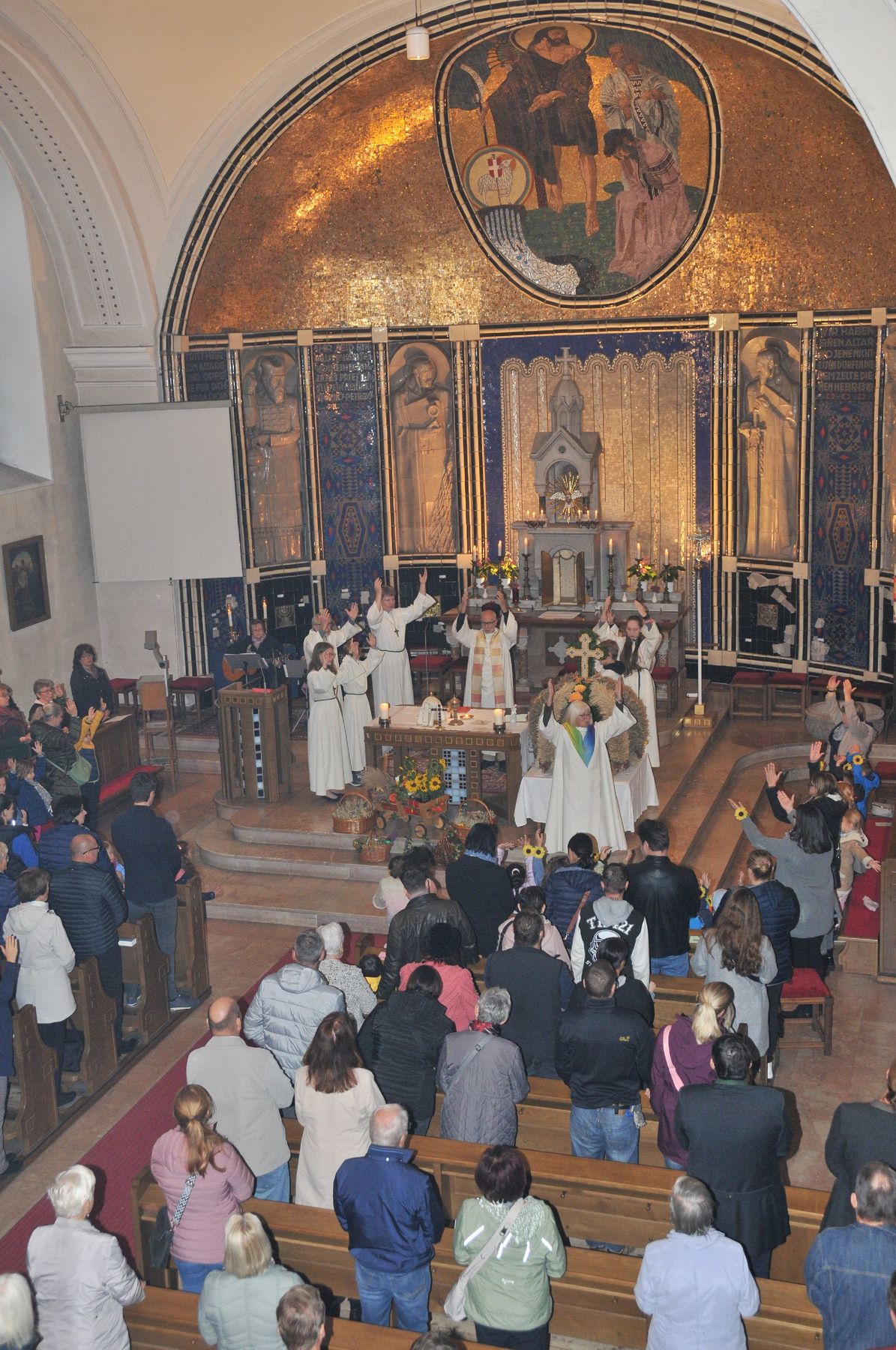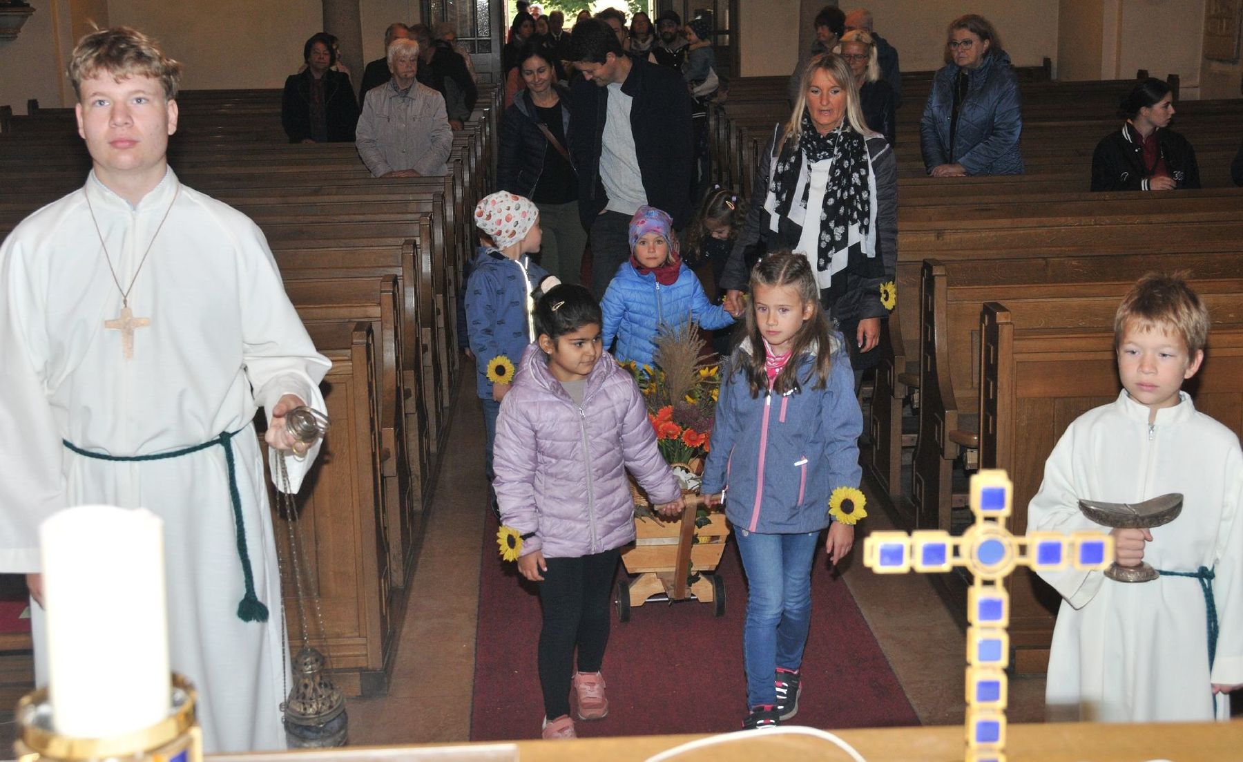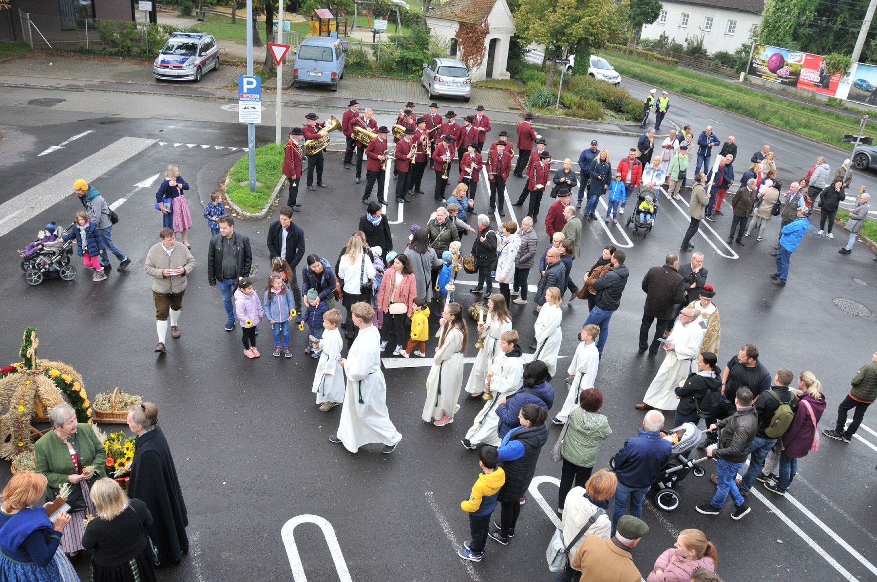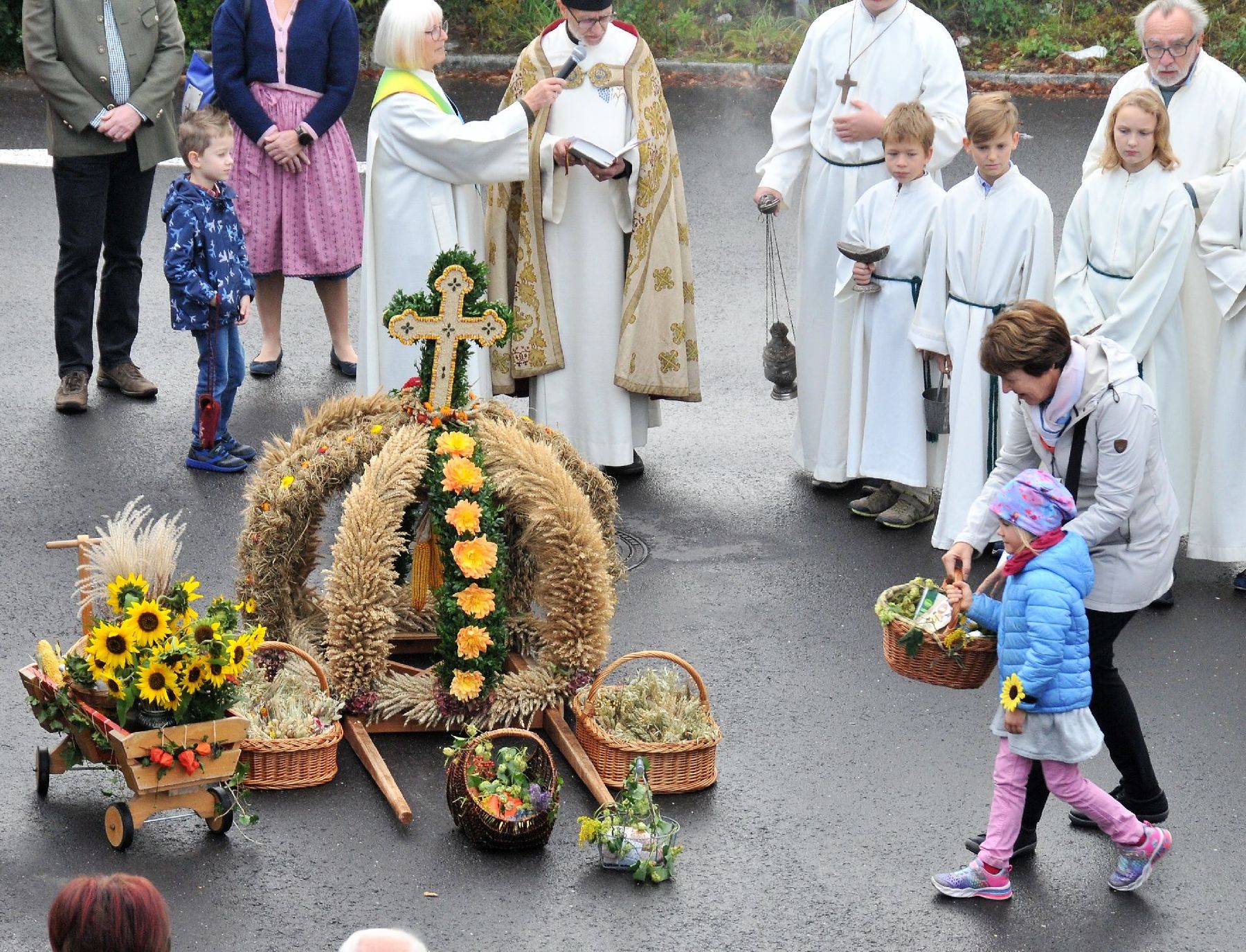Die Erntekrone wurde am Volkshausparklatz gesegnet. Die anschließende Prozession zur Pfarrkirche wurde vom „Musikverein Ebelsberg-Pichling“ angeführt. Viele Kindergartenkinder mit ihren Familien nahmen am Erntedankfest teil. Im Rahmen der Feier in der Pfarrkirche wurde der „Goldene Krug“ an den Obmann des „Musikverein Ebelsberg-Pichling“ Gerhard Ehrenberger für seine Verdienste um das Vereinsleben in Ebelsberg-Pichling überreicht. Der Kapellmeister Josef Schütz würdigte in seinem Rückblick die jahrzehntelange aktive Tätigkeit des Geehrten im Musikverein. Karl Heinz Zöhrer gab uns Einblick in das Wesen des EPV (Ebelsberg-Pichlinger Vereine). Er würdigte auch die Tätigkeit des vor kurzem verstorbenen Gründers und Obmannes Erich Sommer. In einer kurzen Stille gedachten wir des Verstorbenen. Nach dem Lied „Hoamatland“ wurde die Feier unter den Klängen des Musikvereins am Kirchenplatz und im Pfarrzentrum fortgesetzt. Hier gilt auch der „Bauernschaft“ unser Dank für die Organisation und der Verköstigung. Und … auch der Himmel hat das Seine zum Gelingen des Festes beigetragen!