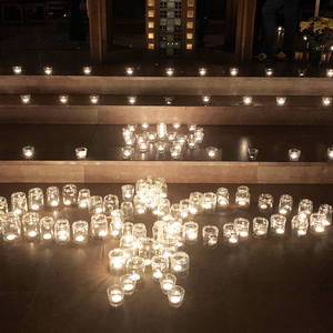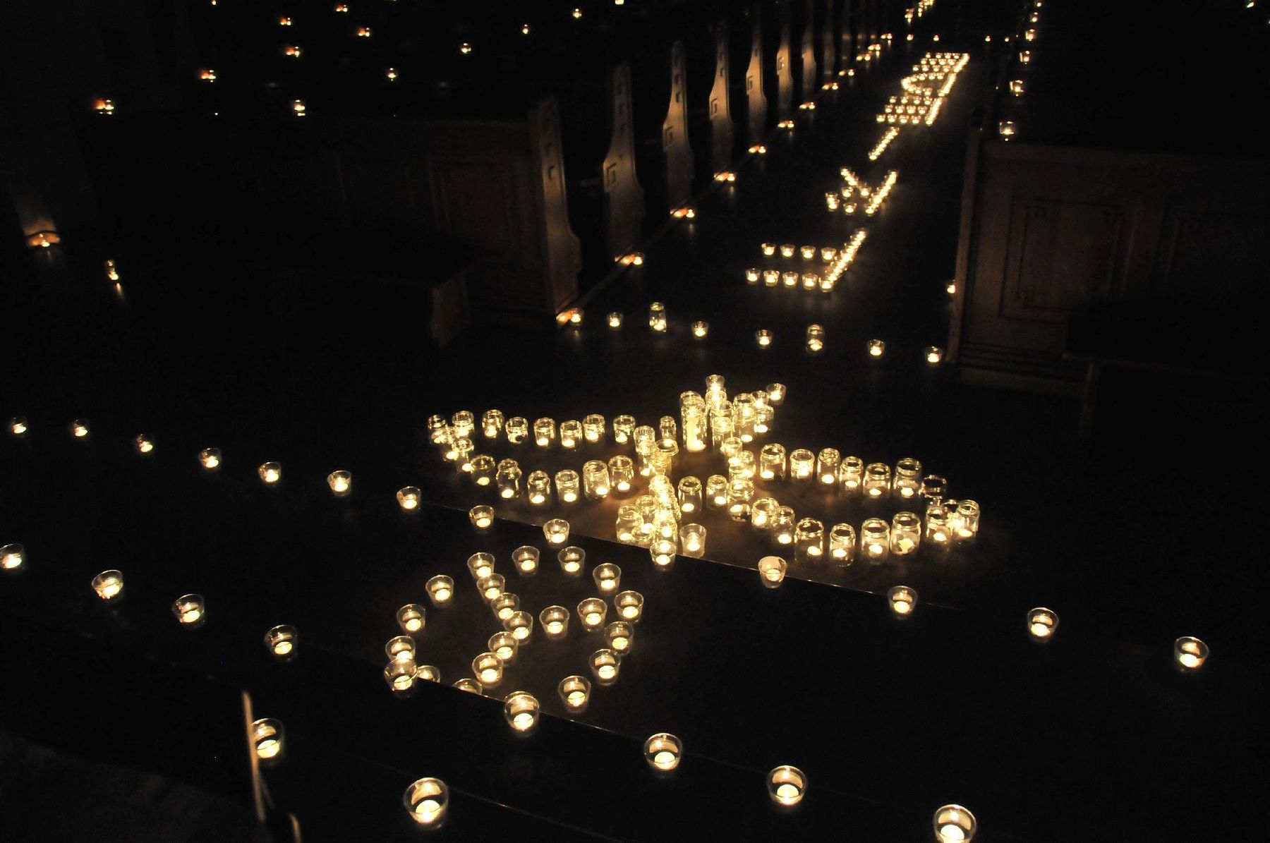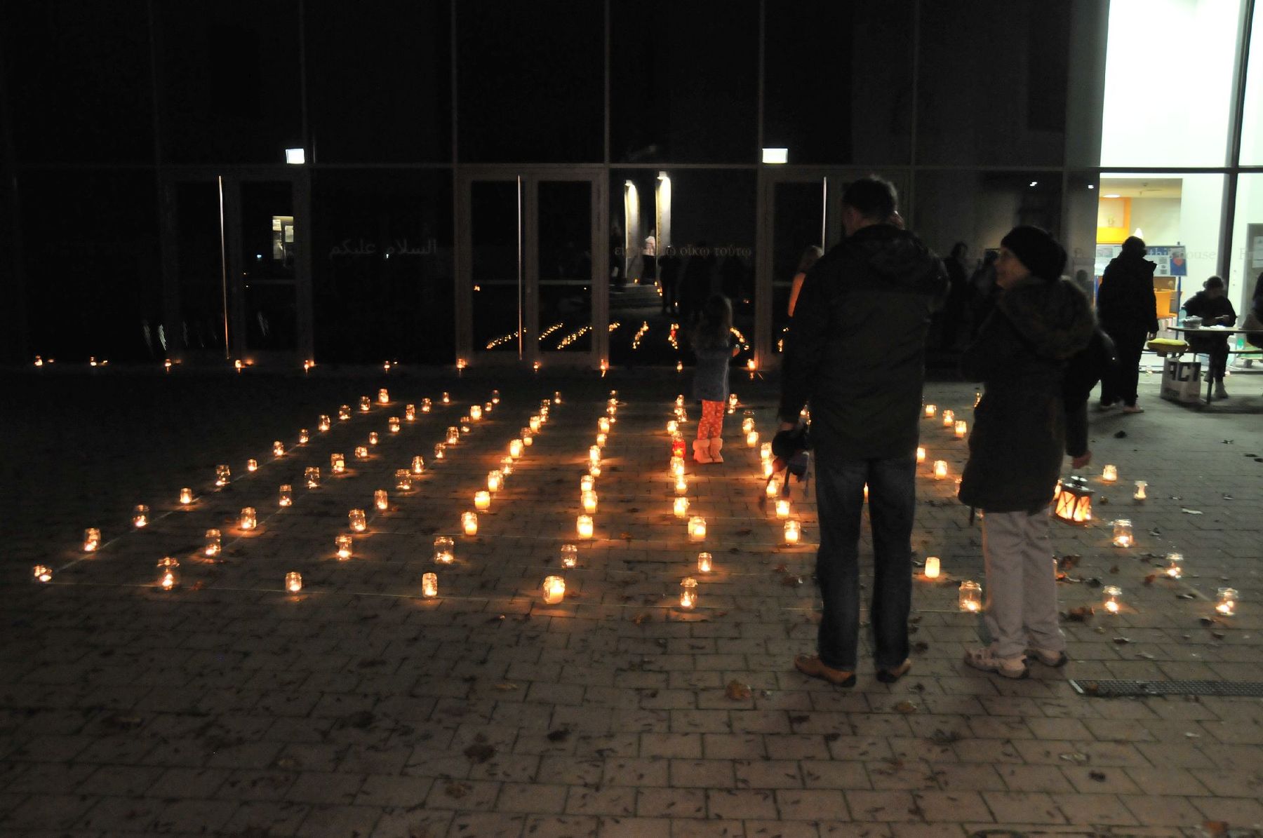 „Am Montag, 31. Oktober erstrahlten die Pfarrkirche und der Kirchenplatz im Schein der 1000 Lichter. Die verschiedenen Stationen mit ihren Texten und Symbolen luden ein über den "Frieden" zu meditieren. Der Weg durch das Labyrinth mit seinen vielen Ecken sollte uns deutlich machen, dass auch der Weg zum Frieden nicht nur geradlinig verläuft.“