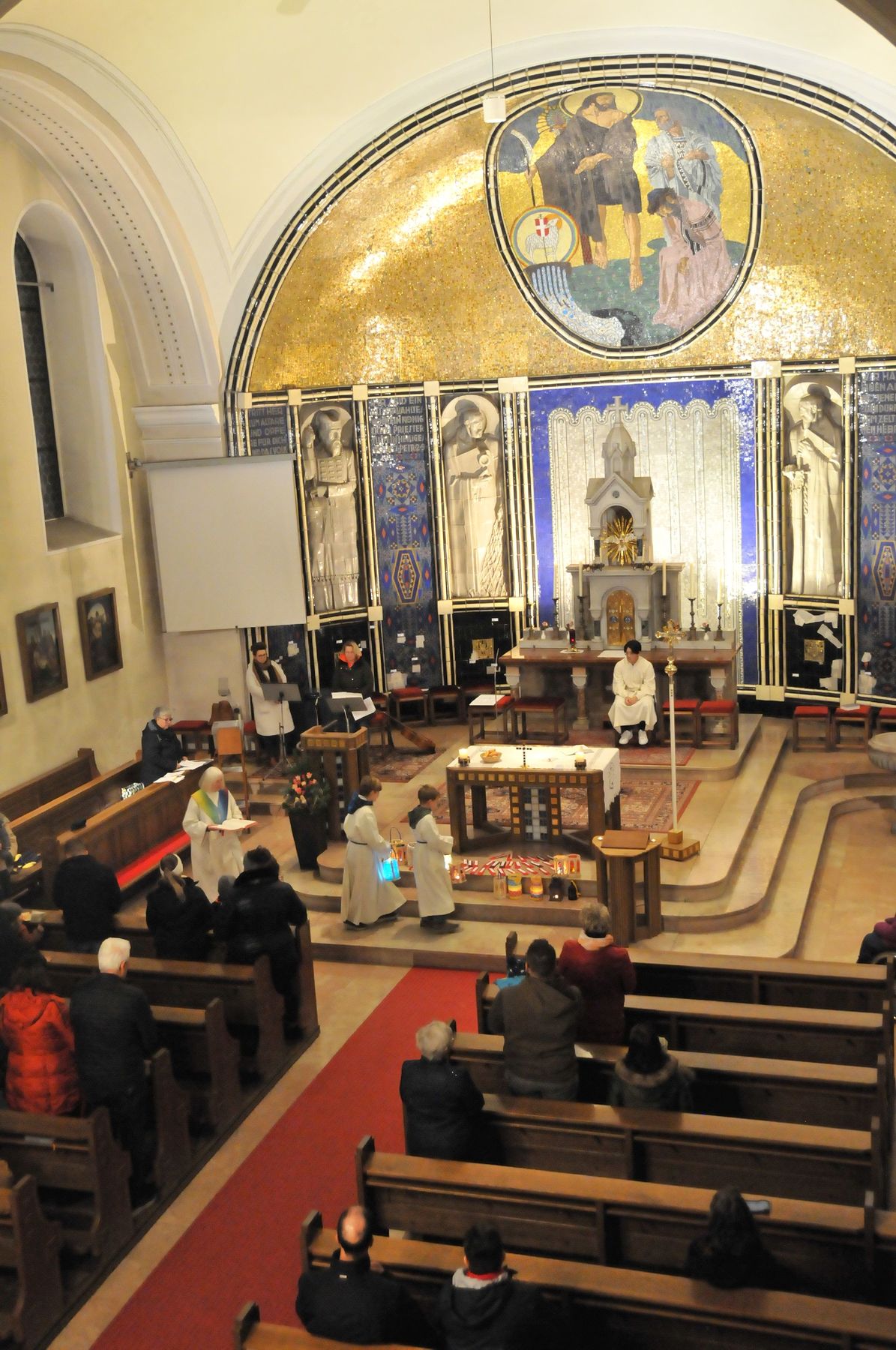 Trotz dichten Nebels fanden einige Familien den Weg zur Kirche...