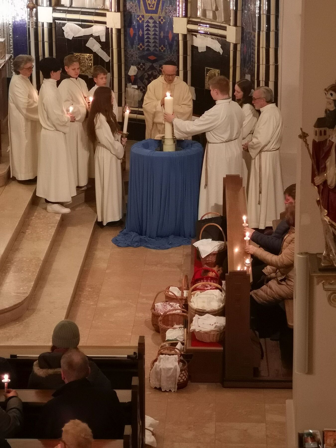 Die Osternachtsfeier mit dem RhythmusChor, Speisenweihe, Osterlicht, anschl. Agape im Pfarrsaal...