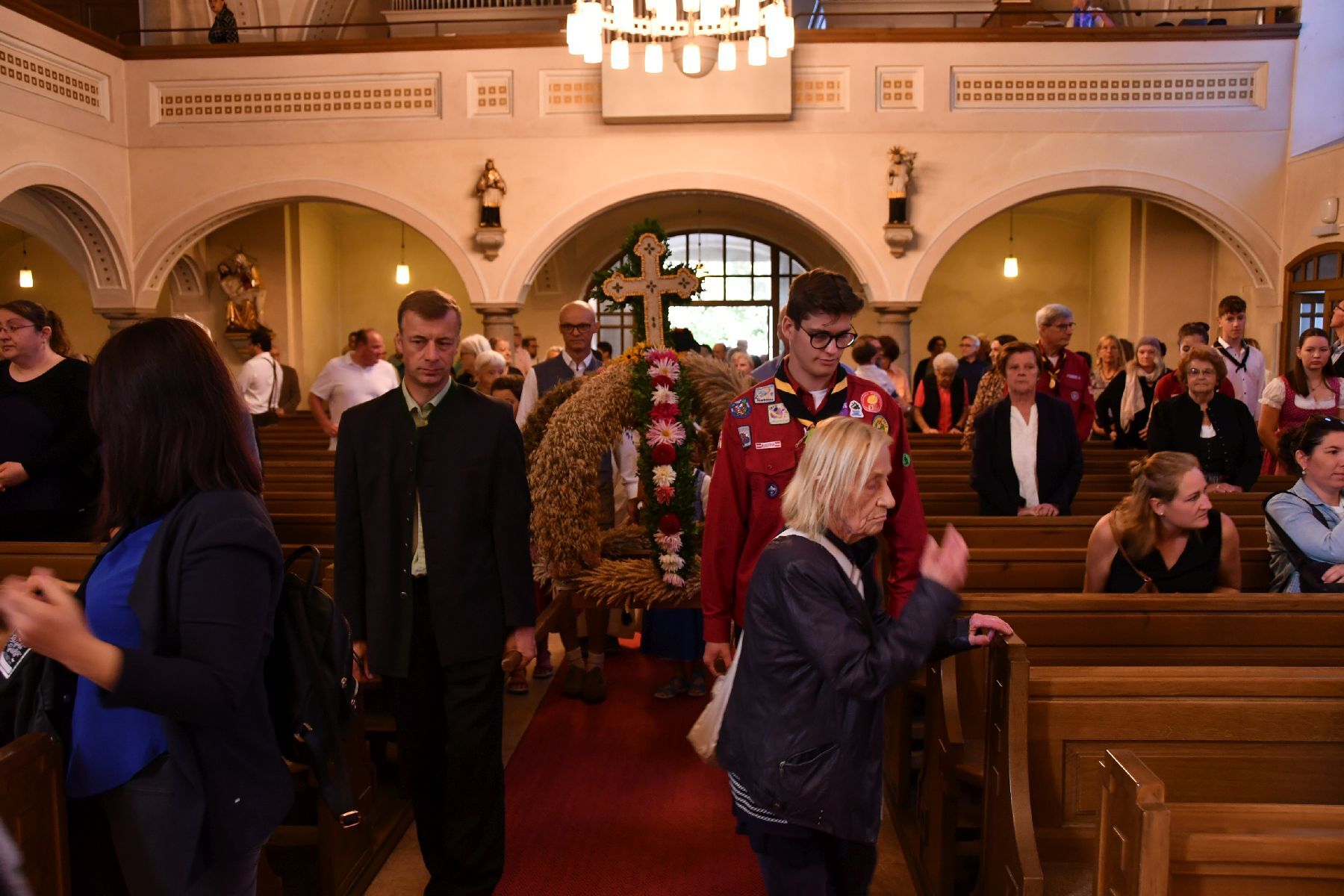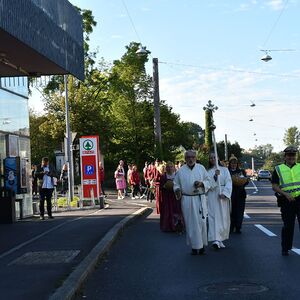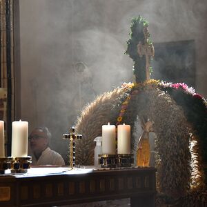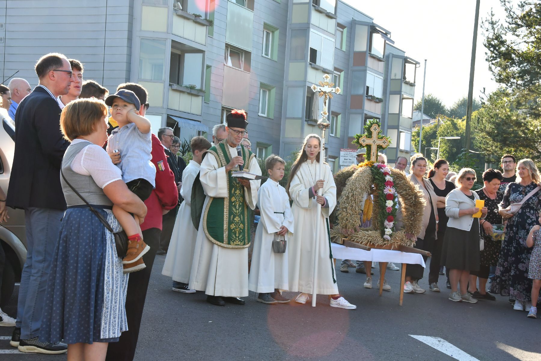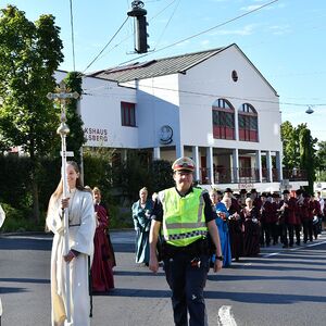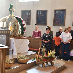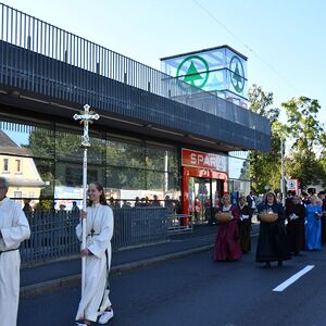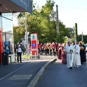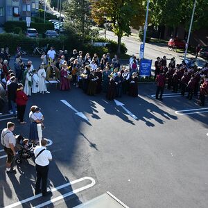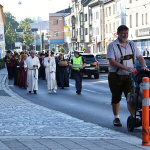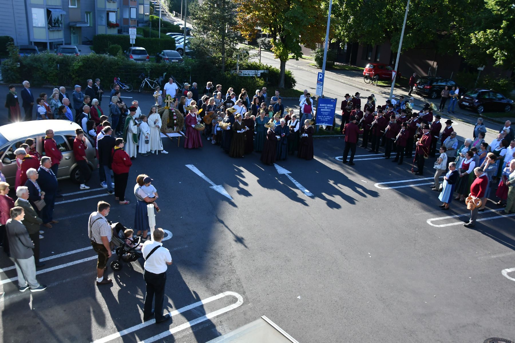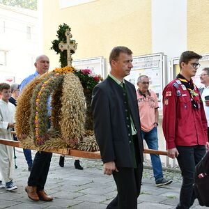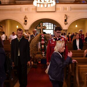 Anschließend gabe es eine Prozession zur Pfarrkirche mit einem Festgottesdienst. Nach der Messe lud die Bauernschaft zu einem Frühschoppen ein...