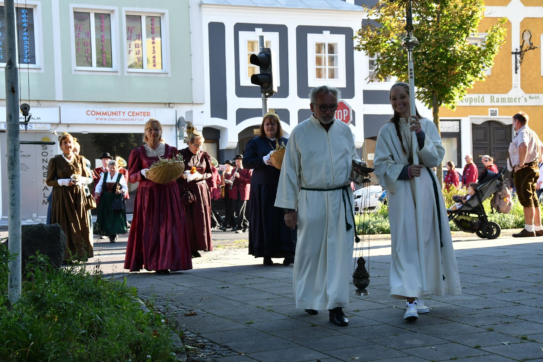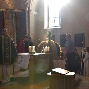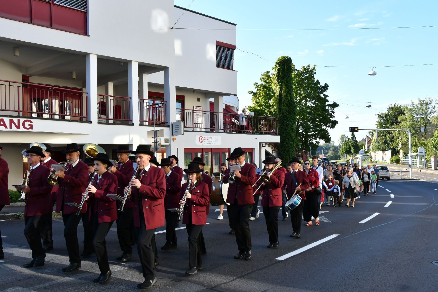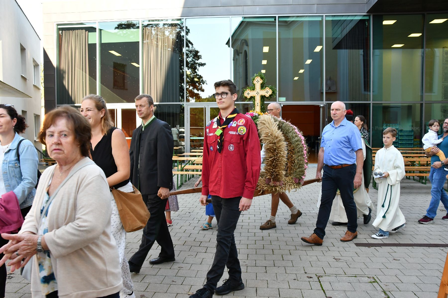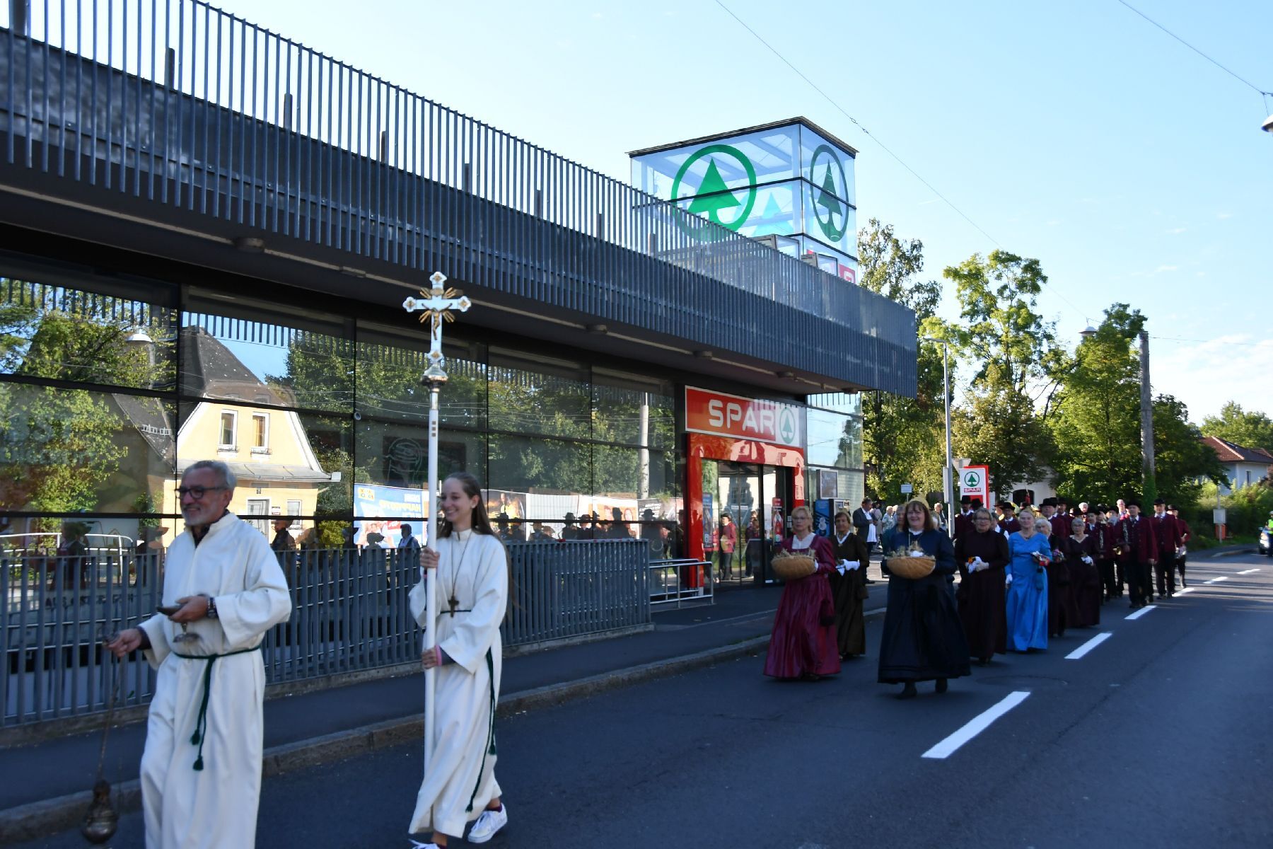 Anschließend gabe es eine Prozession zur Pfarrkirche mit einem Festgottesdienst. Nach der Messe lud die Bauernschaft zu einem Frühschoppen ein...