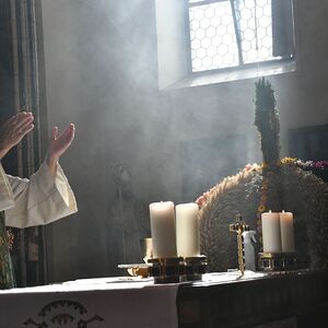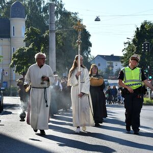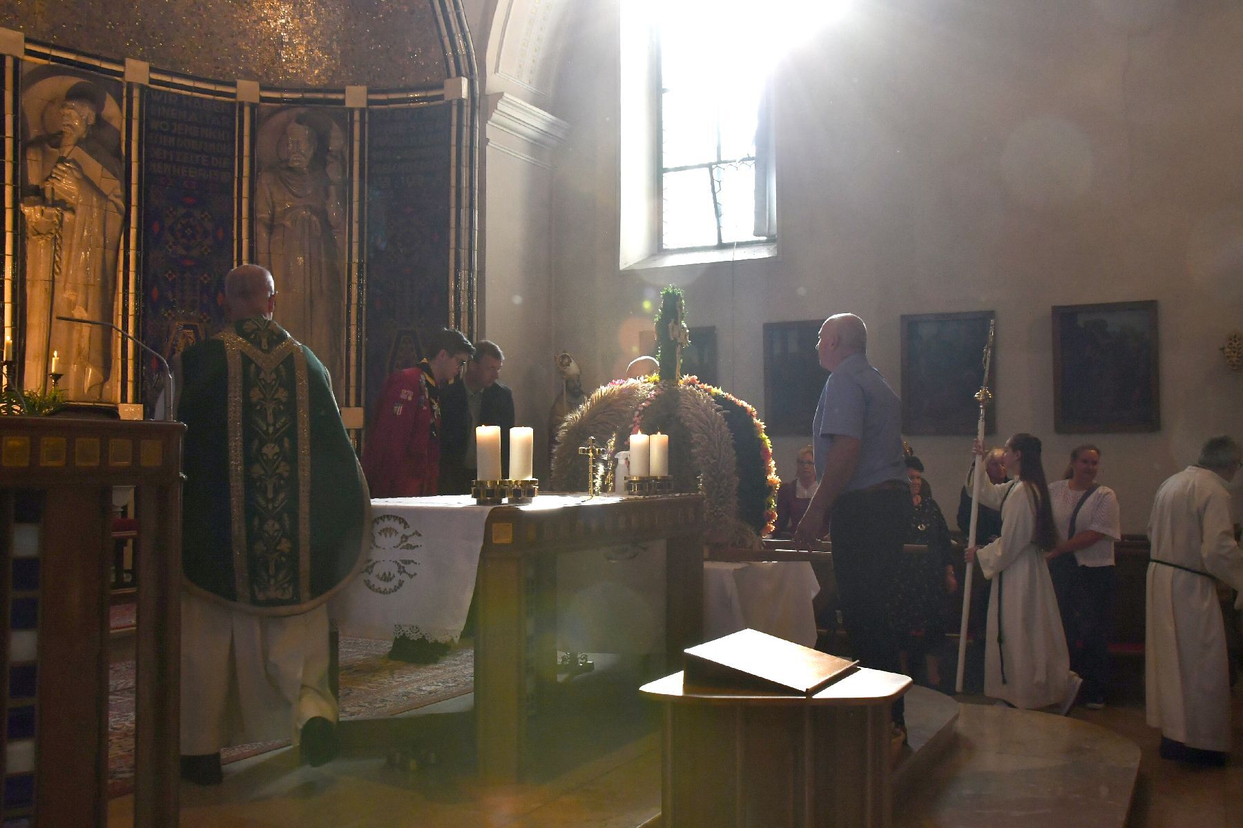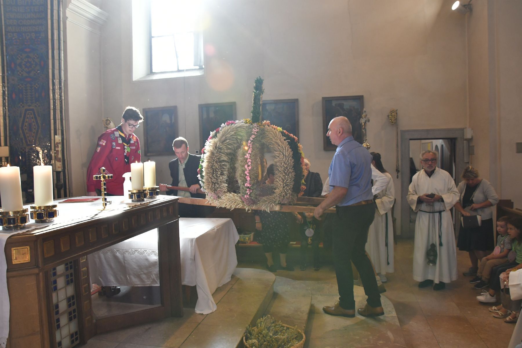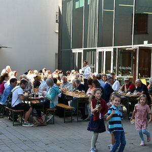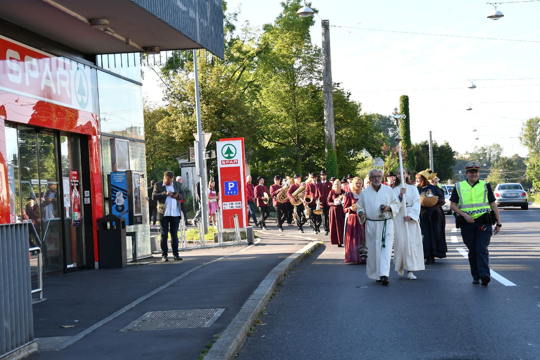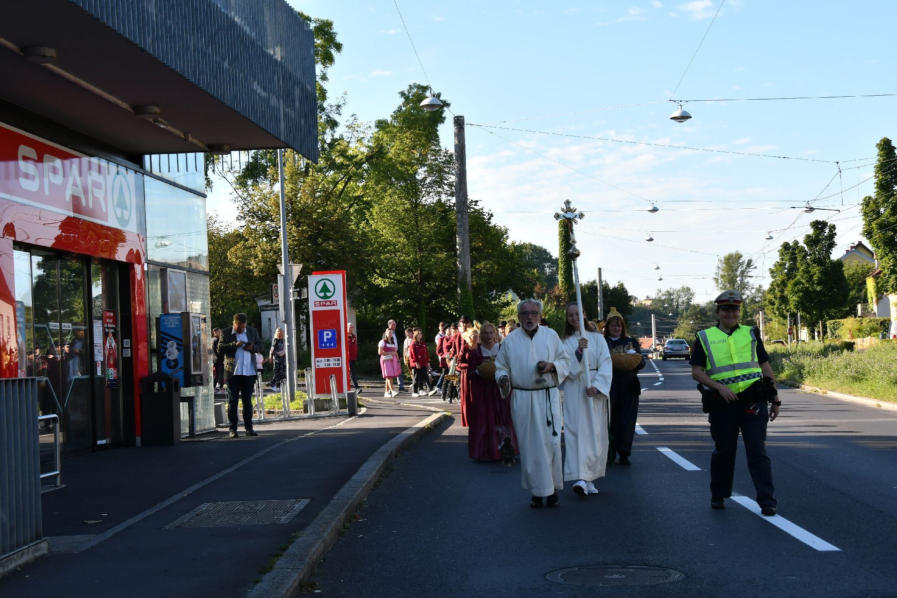 Anschließend gabe es eine Prozession zur Pfarrkirche mit einem Festgottesdienst. Nach der Messe lud die Bauernschaft zu einem Frühschoppen ein...