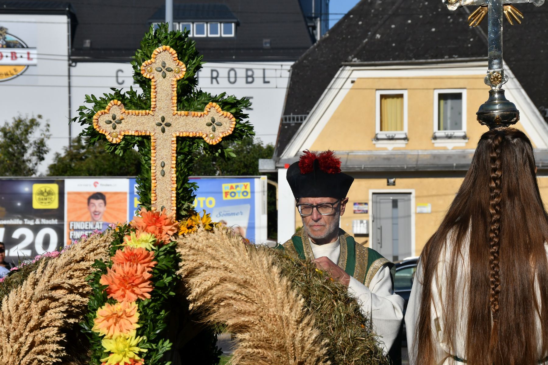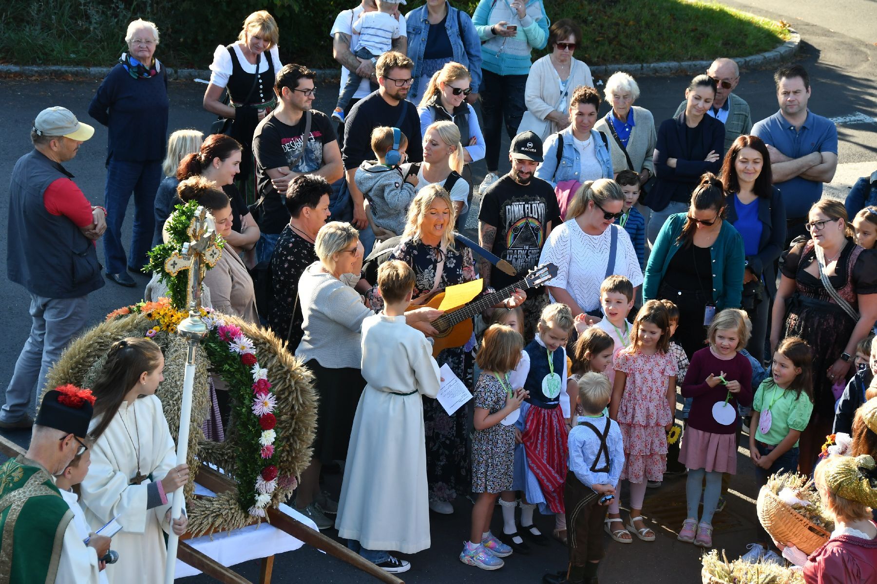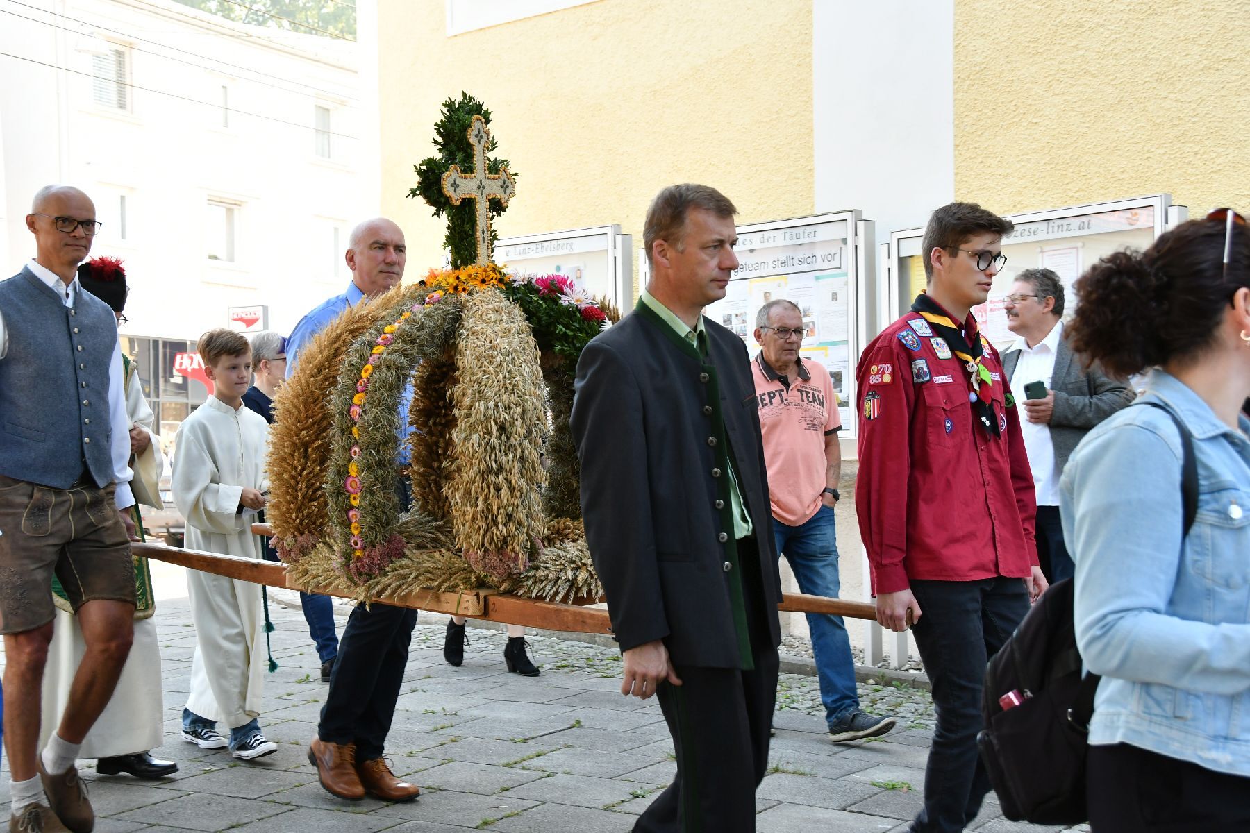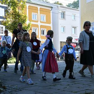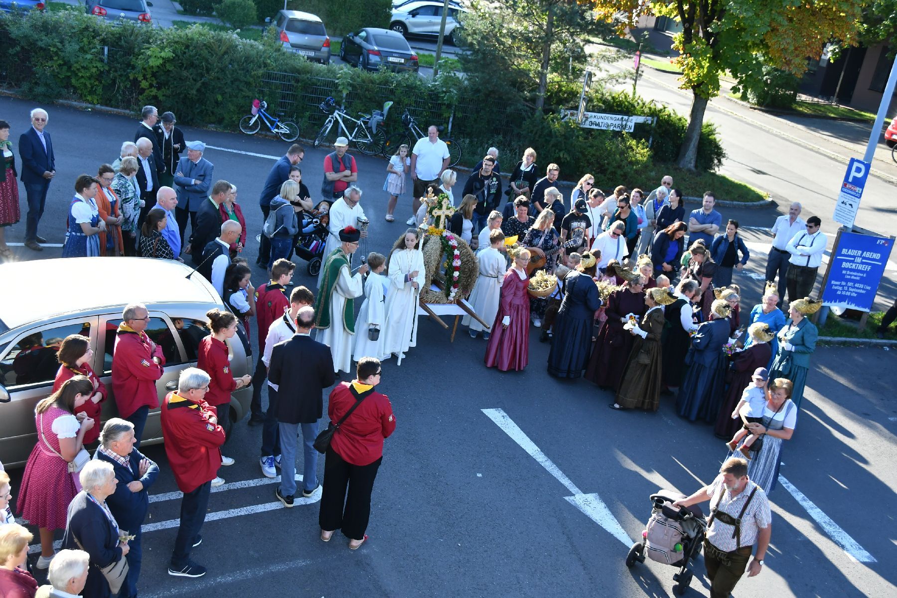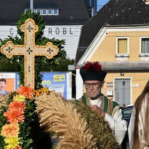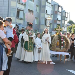 Bei strahlendem Wetter wurde die Erntekrone beim Volkshaus Ebelsberg gesegnet.