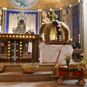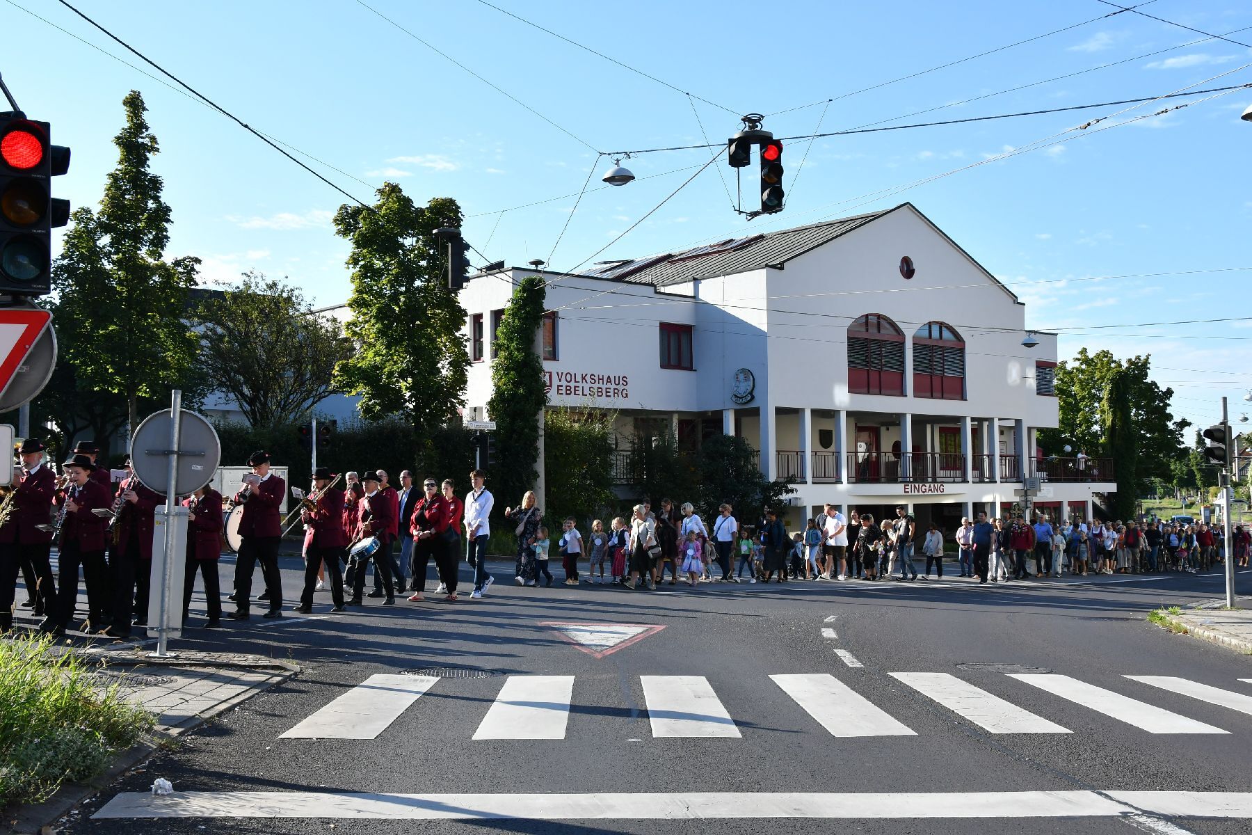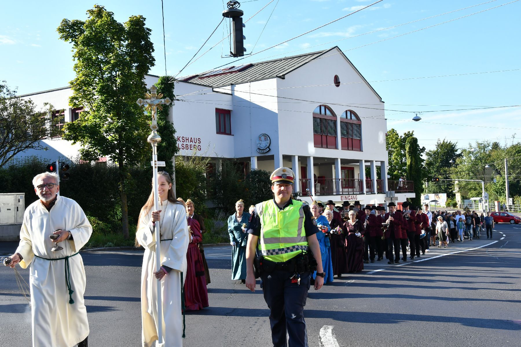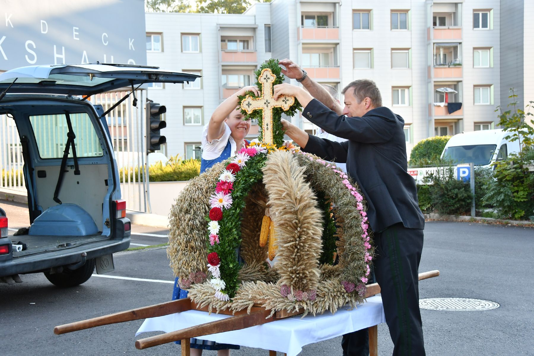 Bei strahlendem Wetter wurde die Erntekrone beim Volkshaus Ebelsberg gesegnet.