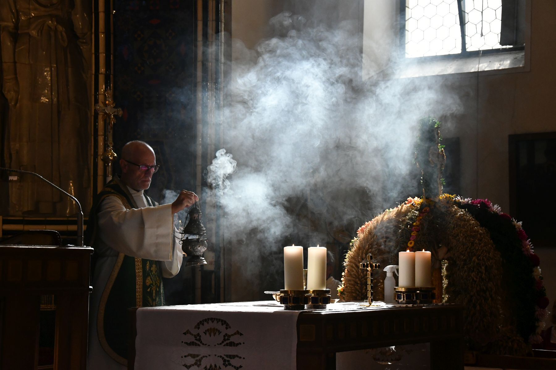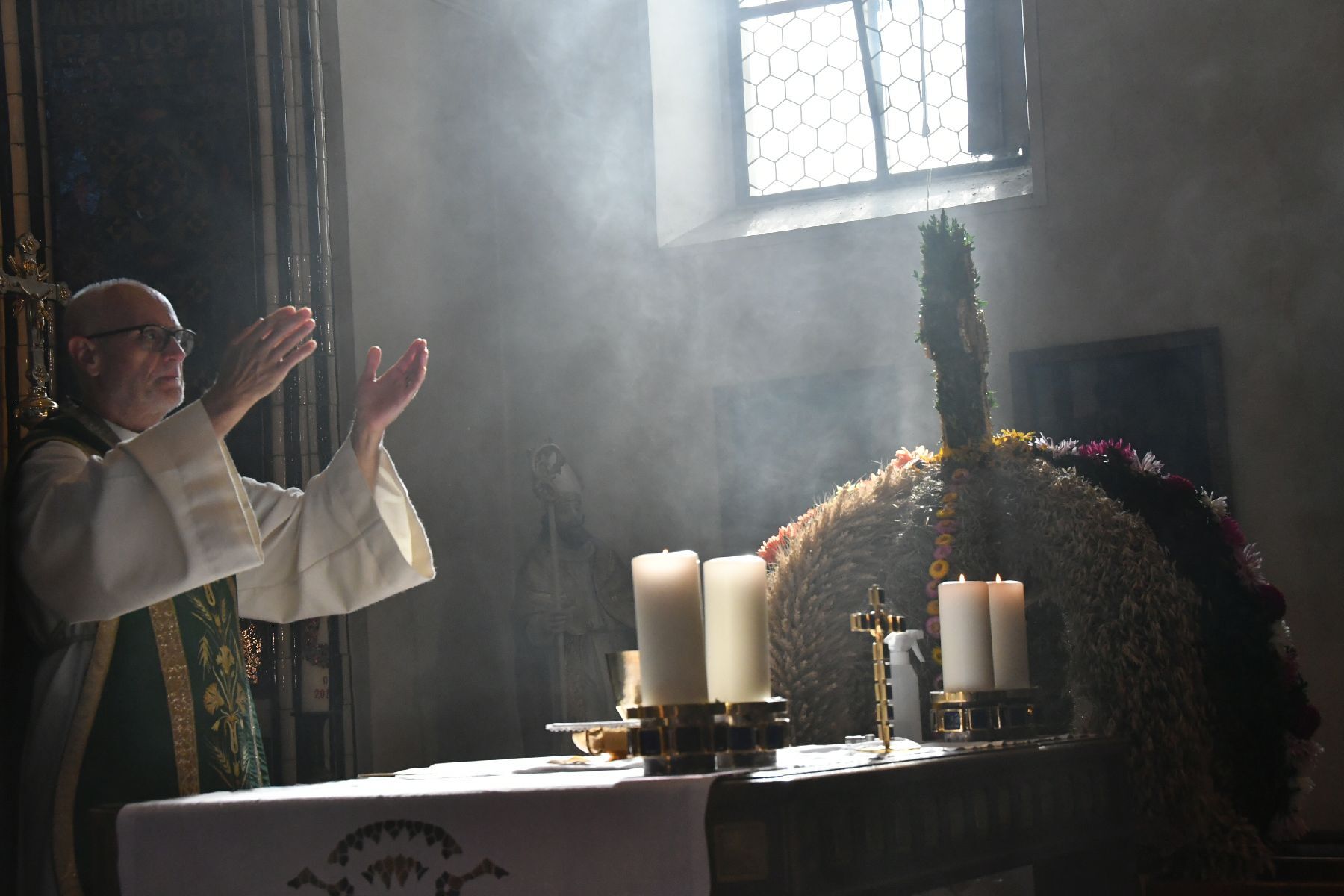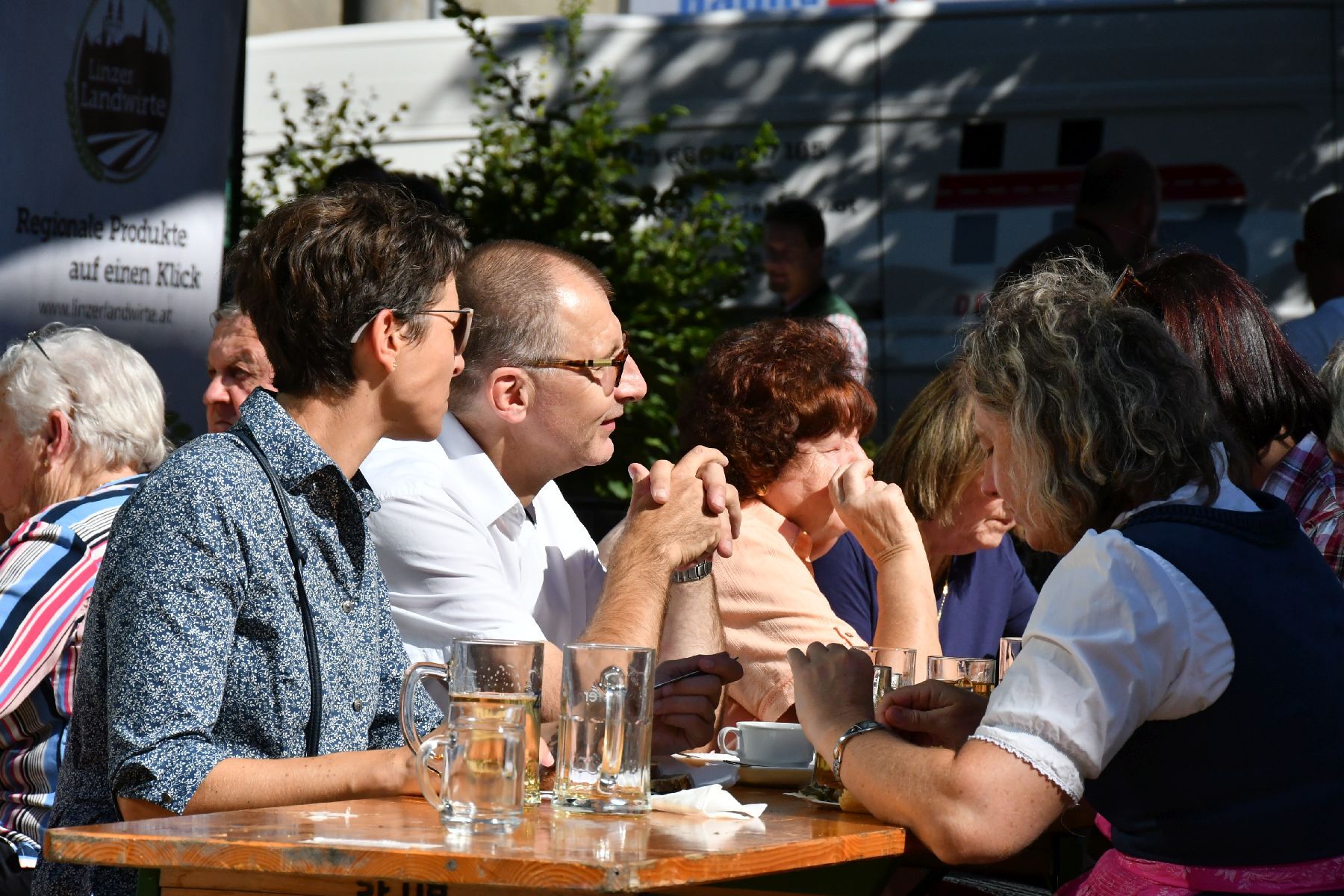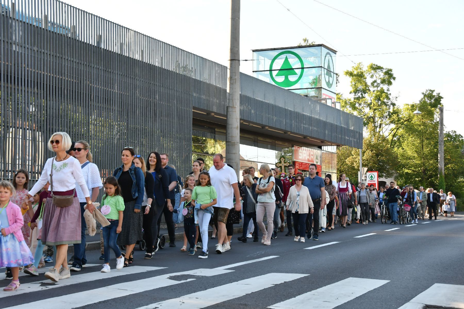 Bei strahlendem Wetter wurde die Erntekrone beim Volkshaus Ebelsberg gesegnet.
