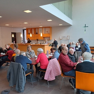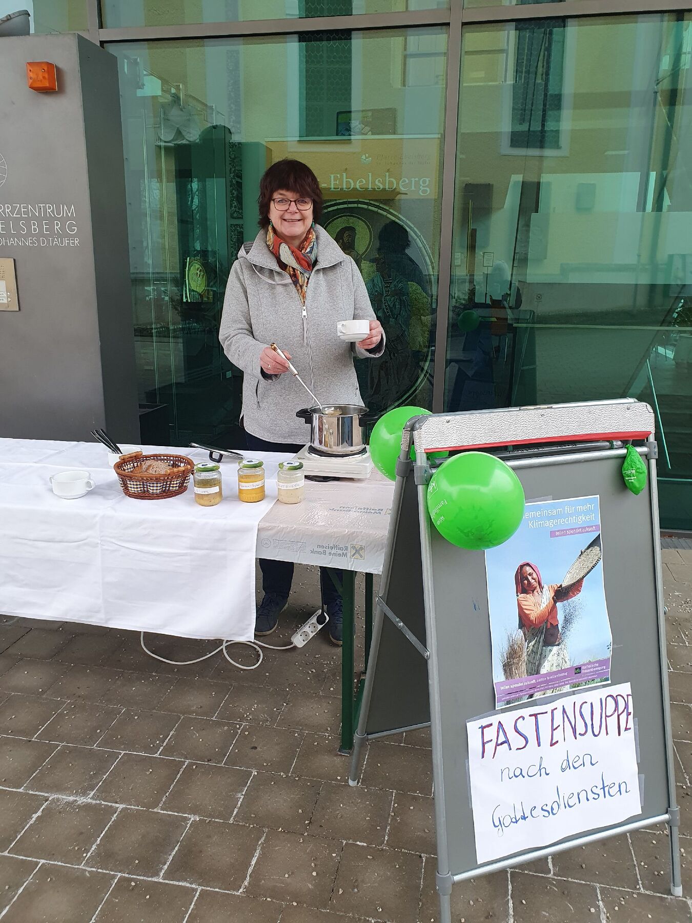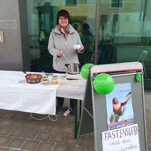 Die kfb-Ebelsberg lud zum Fastensuppen-Essen ein und die Kirchenbesucher ließen sich die verschiedenen Suppen schmecken. Man konnte auch noch Suppe im Glas für daheim mitnehmen.
