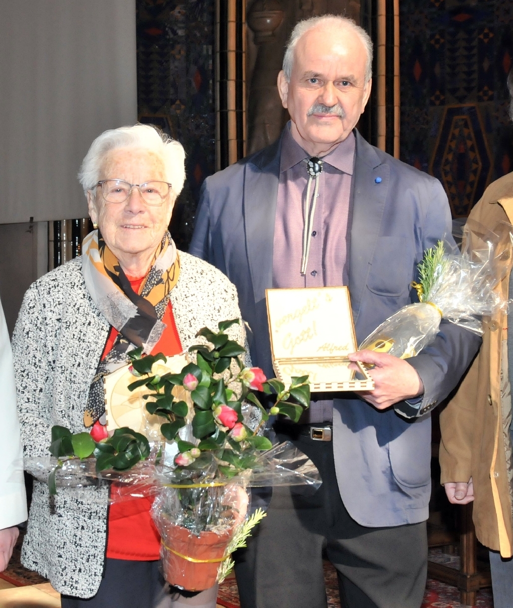 Stellvertretend für alle ehrenamtlichen Pfarrmitarbeiter:innen wurden auch heuer wieder zwei Personen am Sonntag vor dem „Josefitag“ besonders geehrt. Heuer wurden Josefine „Pepi“ Neuwirt und Alfred Höllhumer für ihr ehrenamtliches Engagement in unserer Pfarre im Rahmen des Sonntagsgottesdienstes mit einer Medaille ausgezeichnet. Anschließend wurde ins Pfarrcafe eingeladen, wo auch vom PGR-Fachteam „Unsere Welt“ fair gehandelte Waren zum Kauf angeboten wurden.