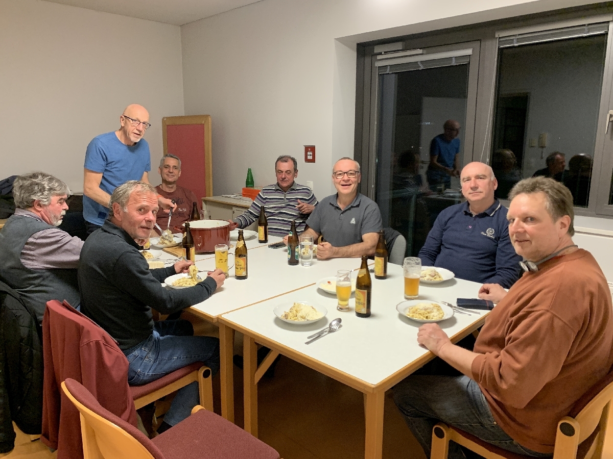 Als Vertreter von Christian kochte Alex mit den Männern "Sugo di Fungi e Proscutto".