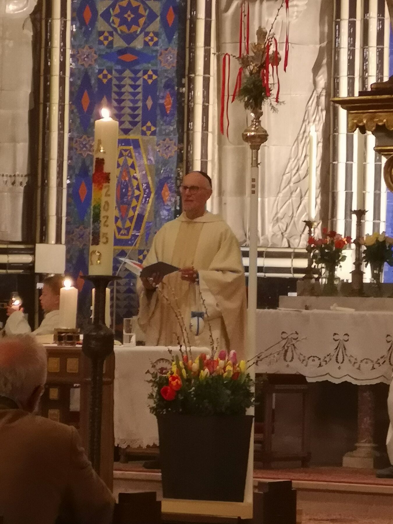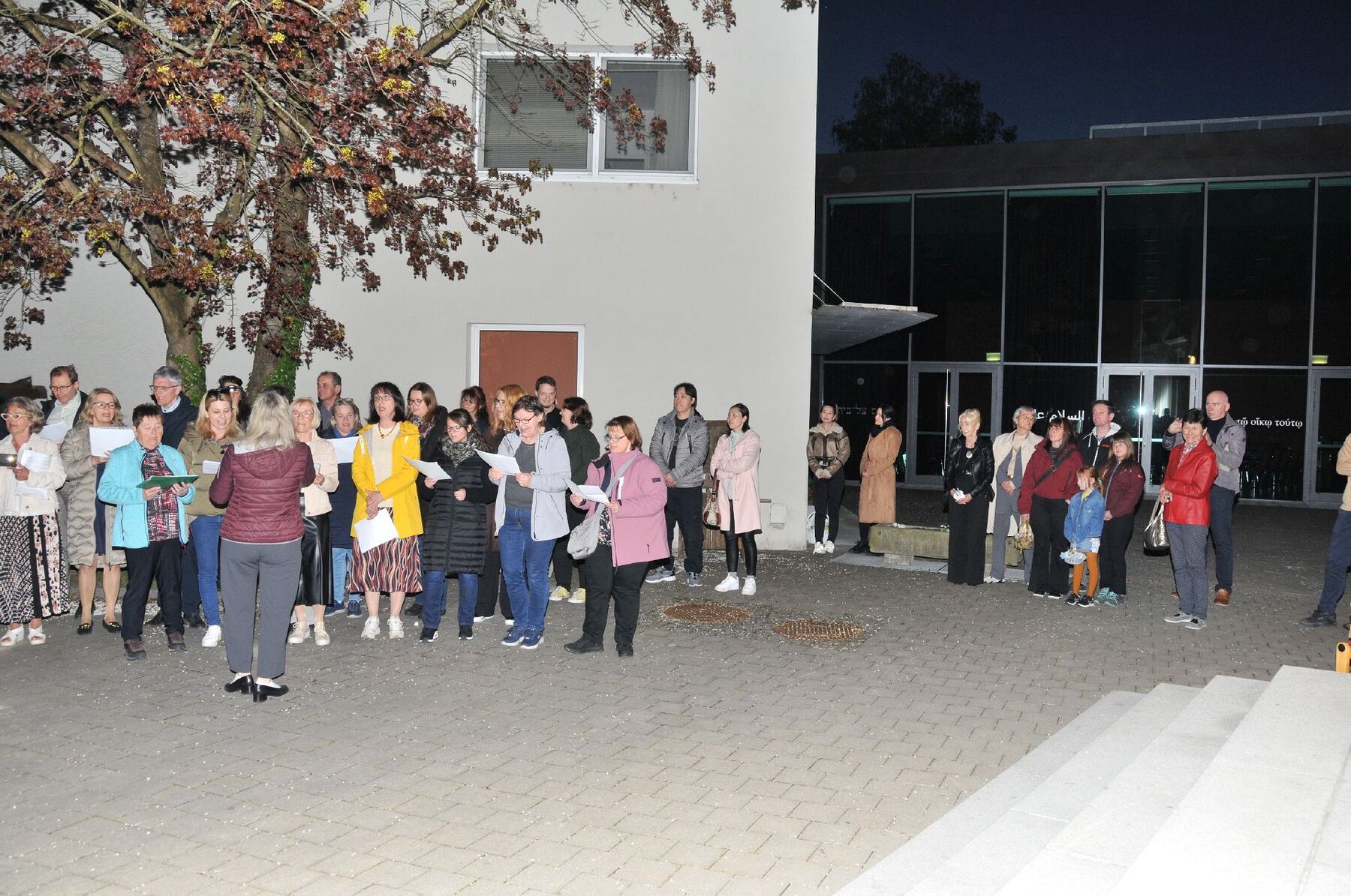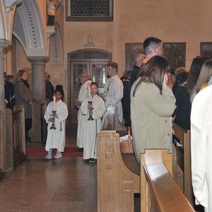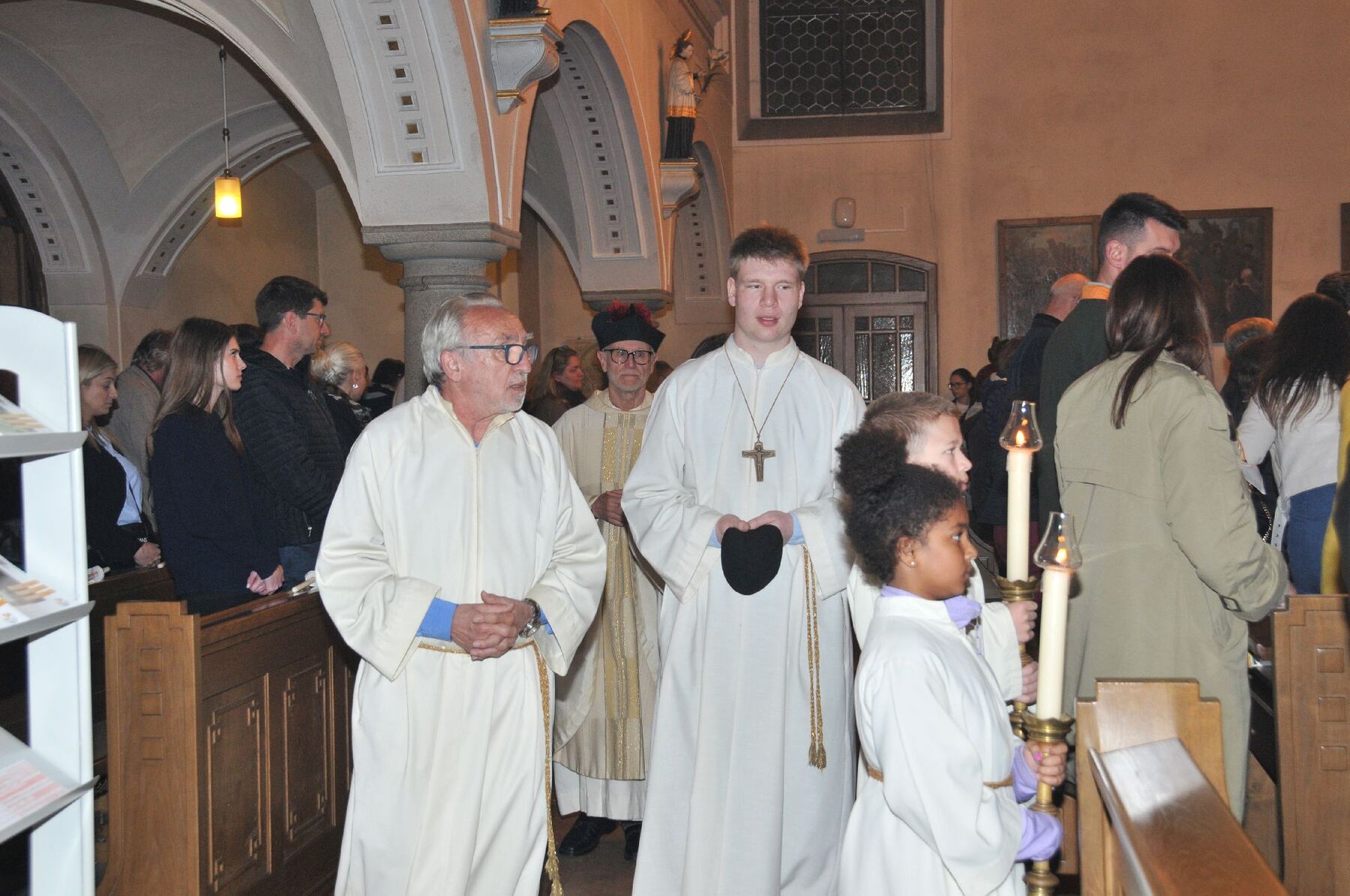 Die Auferstehungsfeier am Karsamstag begann am Kirchenplatz mit der Feuerweihe und dem Entzünden der Osterkerze. Das Osterfeuer entzündeten traditionell die Pfadfinder. Musikalisch wurde die Feier vom RhythmusChor gestaltet. Die im Gottesdienst geweihten Speisen wurden anschließend im Pfarrzentrum in geselliger Runde verzehrt.