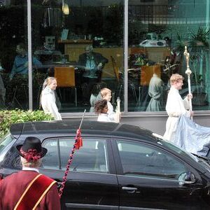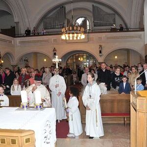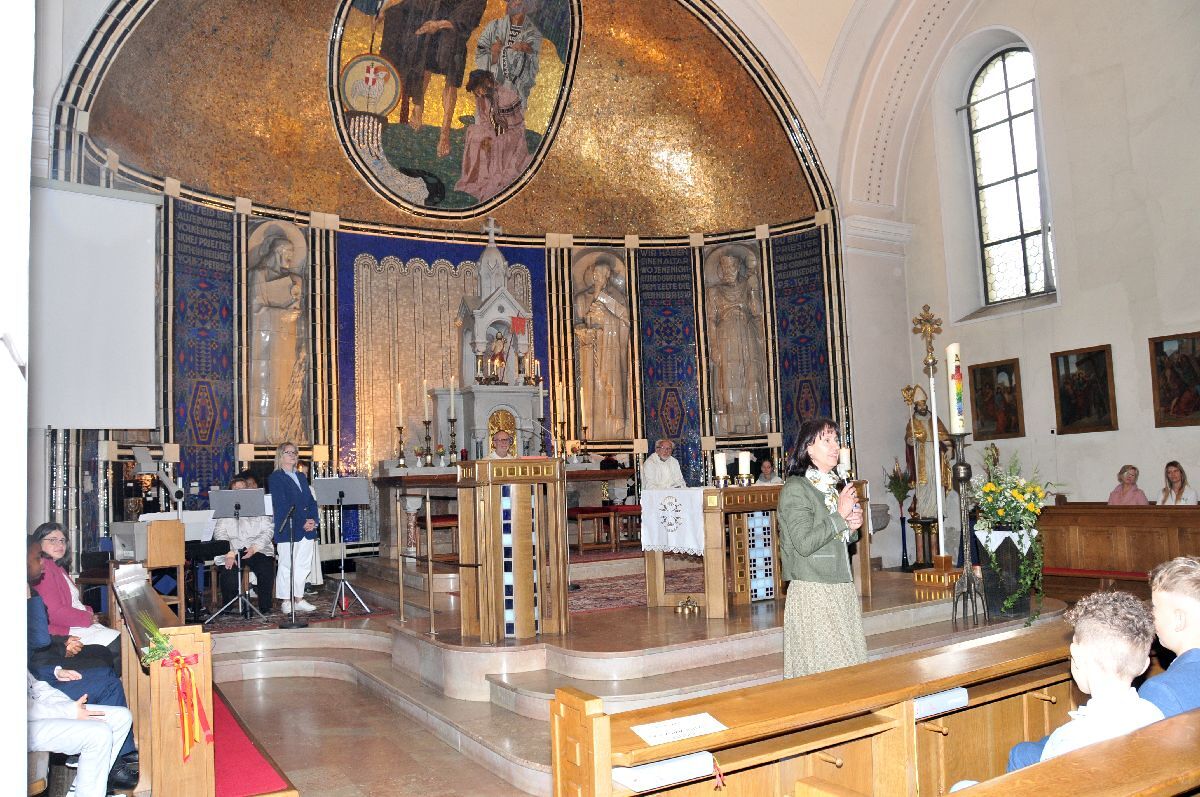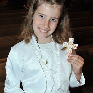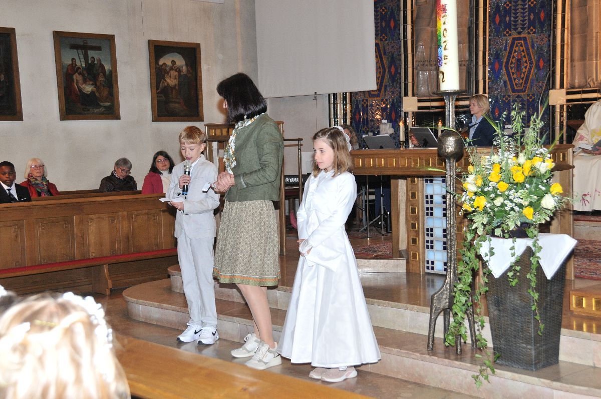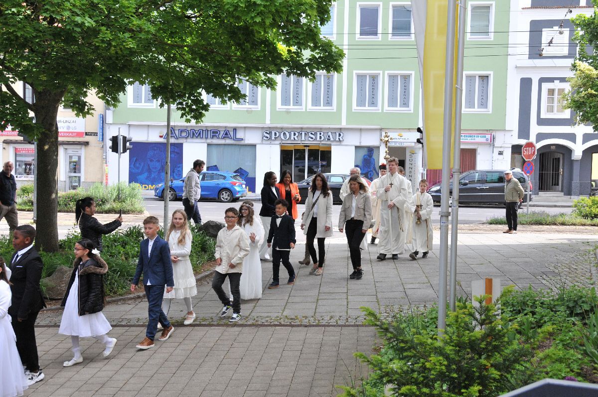Unter den Klängen der Blasmusik zogen 13 ErstkommunikantInnen in die Pfarrkirche. Nach der Feier wurden von der Männerrunde Getränke, sowie Kaffee und Kuchen angeboten.