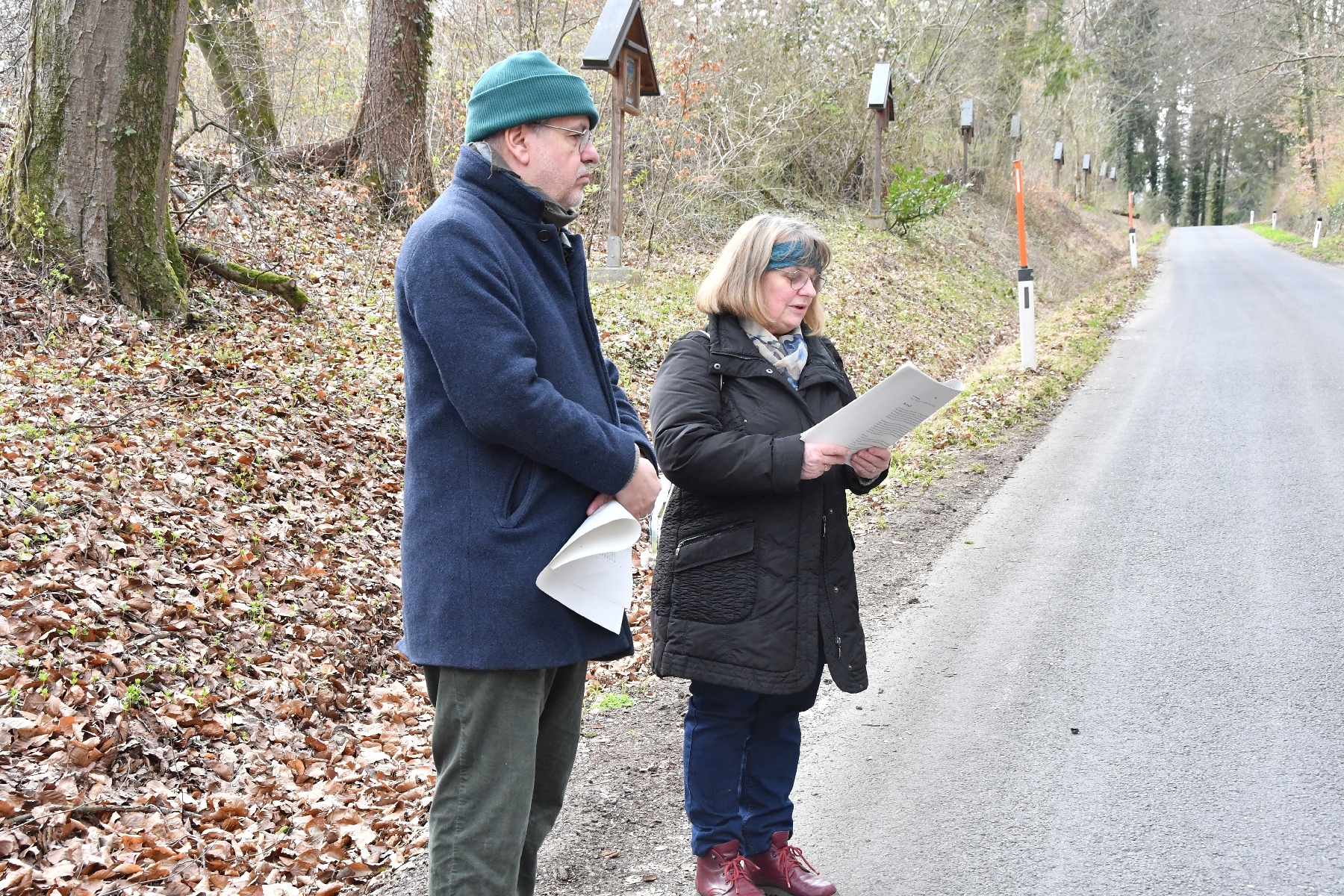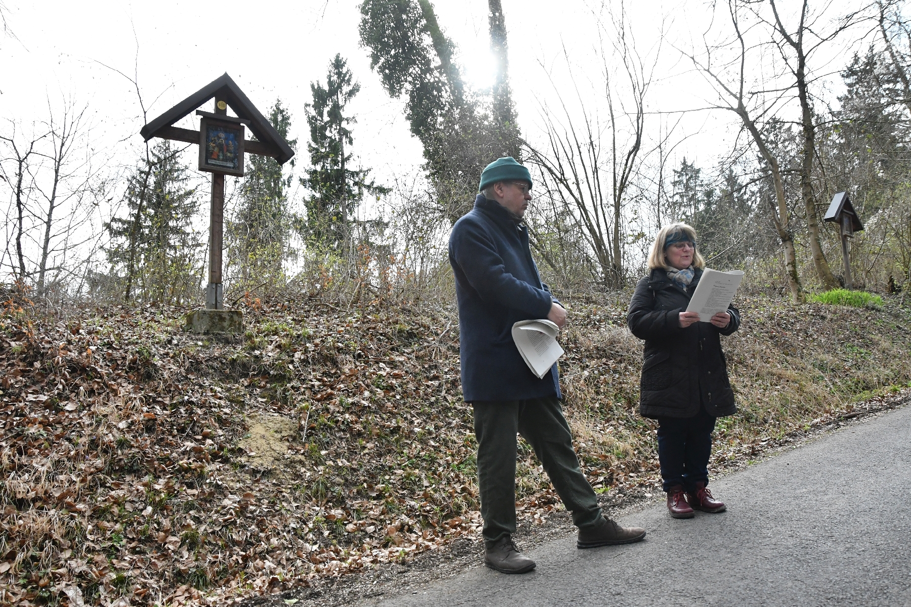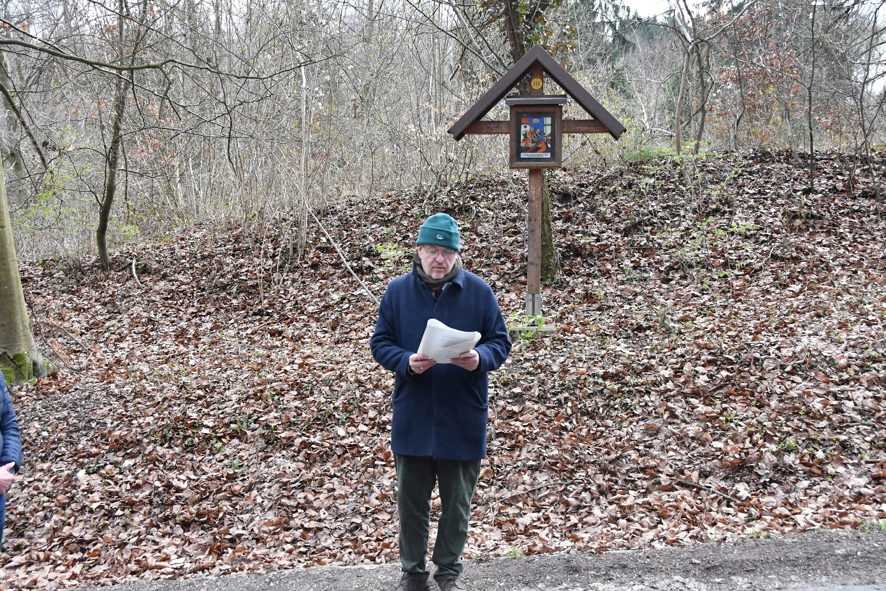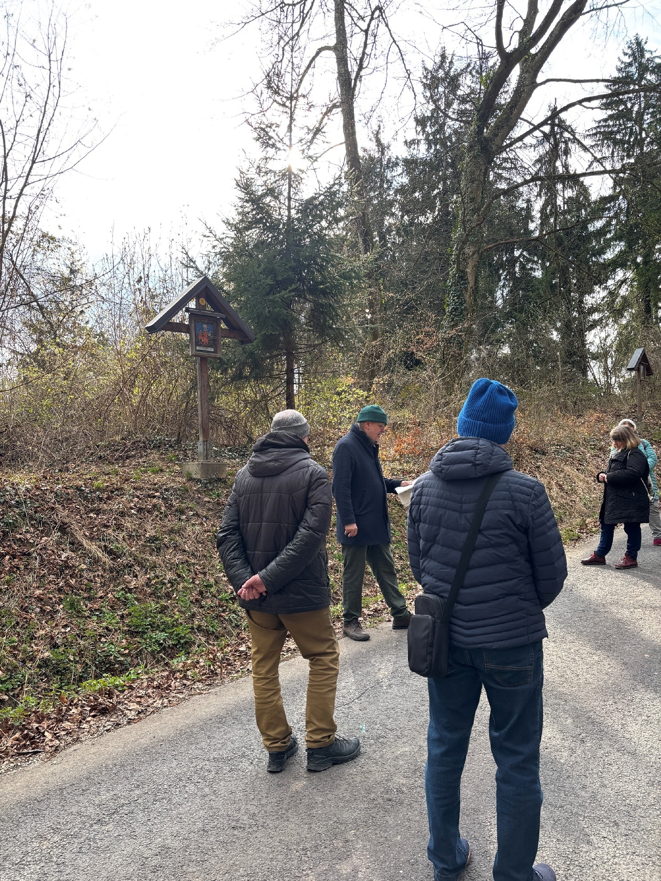 Die Kreuzwegandacht am Schiltenberg, gestaltet von Herrn Christian F. Freisleben, war ein besonders eindrucksvolles Erlebnis. Mit großer Sensibilität und Tiefe las er ausgewählte Texte vor, die zum Innehalten und Nachdenken einluden. Die Worte begleiteten die Teilnehmenden auf ihrem Weg von Kreuz zu Kreuz und eröffneten neue Perspektiven auf Leid, Hoffnung und Glauben (KI).