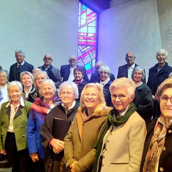 # Aus den Mitgliedern des früheren Seniorenbundchores und dem bestehenden Chorus Gaudete bildete sich eine große Chorgemeinschaft unter der Leitung von Frau Monika Hinterlehner. Bei den Mitfeiernden kam nicht nur ein wunderbarer, voller Klang an. Auch die vor Freude strahlenden Gesichter spiegelten sich bei den Zuhörenden wider. Herzlichen Dank für euren Einsatz, liebe Sänger:innen, wir freuen uns auf das nächste Mal.