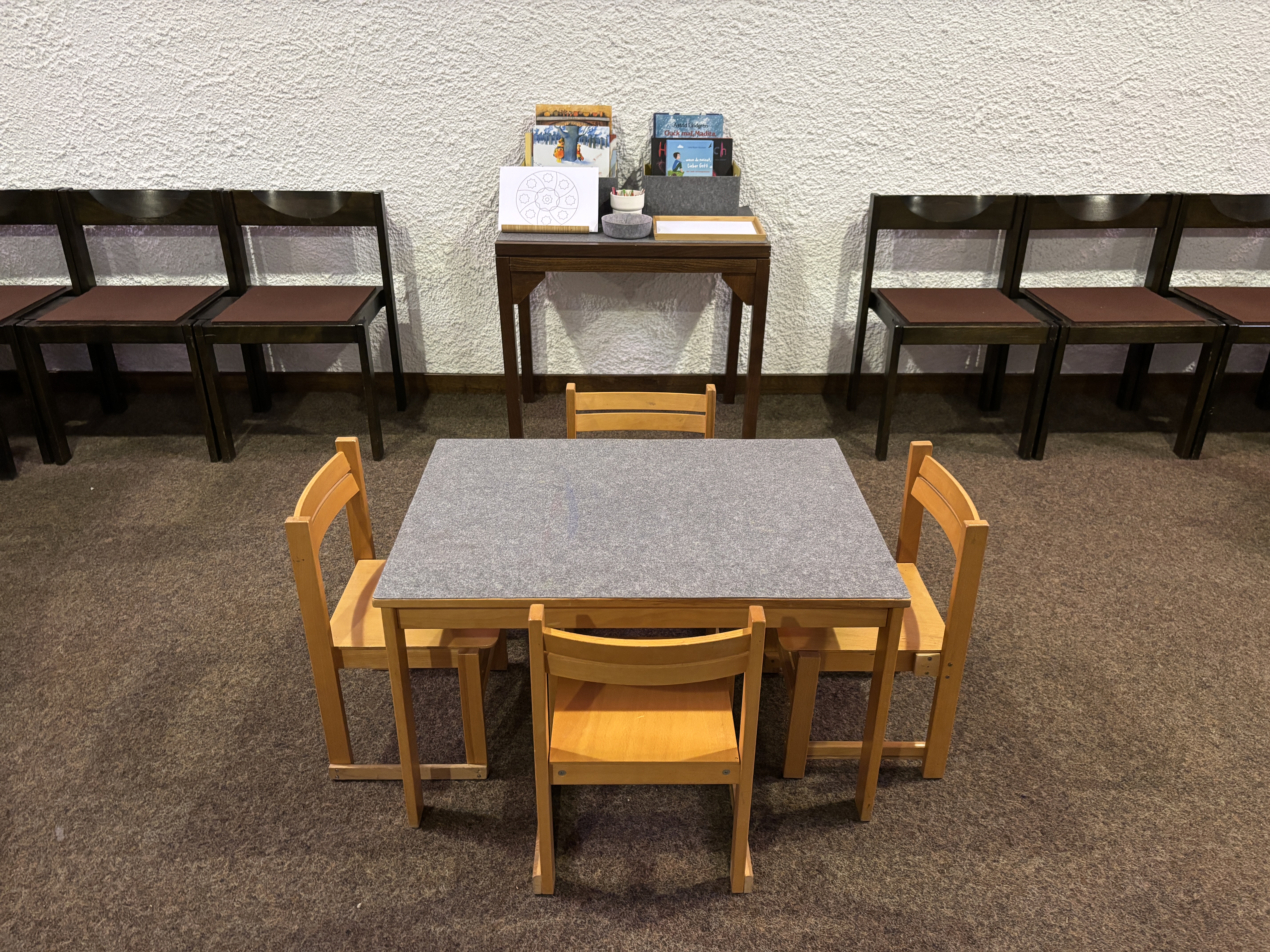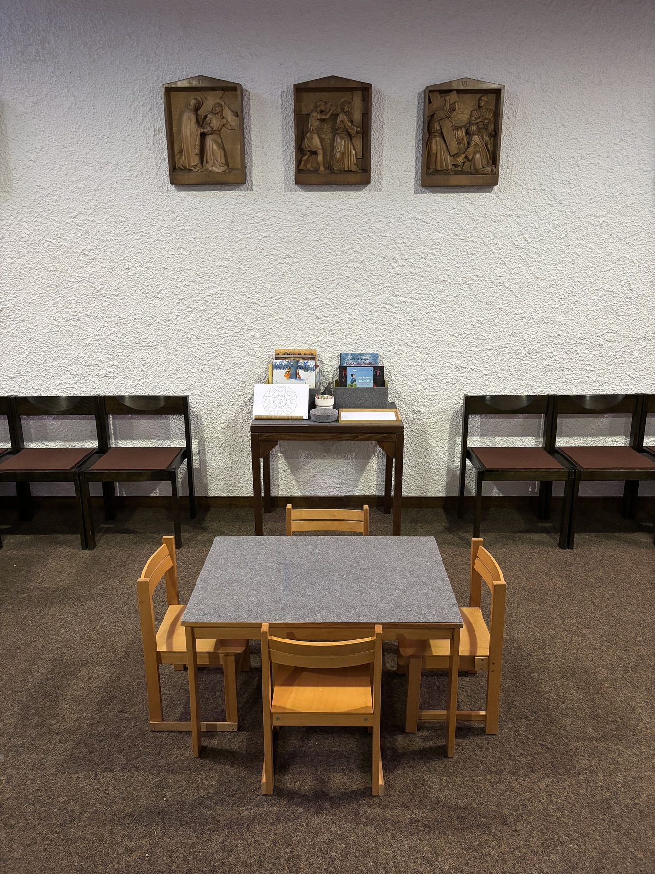 Aktuell wird die Wochentagskapelle hauptsächlich mit offener Falttür als Vergrößerung des Kirchenraums genutzt. Der sich im hinteren Bereich der Wochentagskapelle befindende Kindertisch mit Malsachen und Büchern wird gern während des Gottesdienstes genutzt.