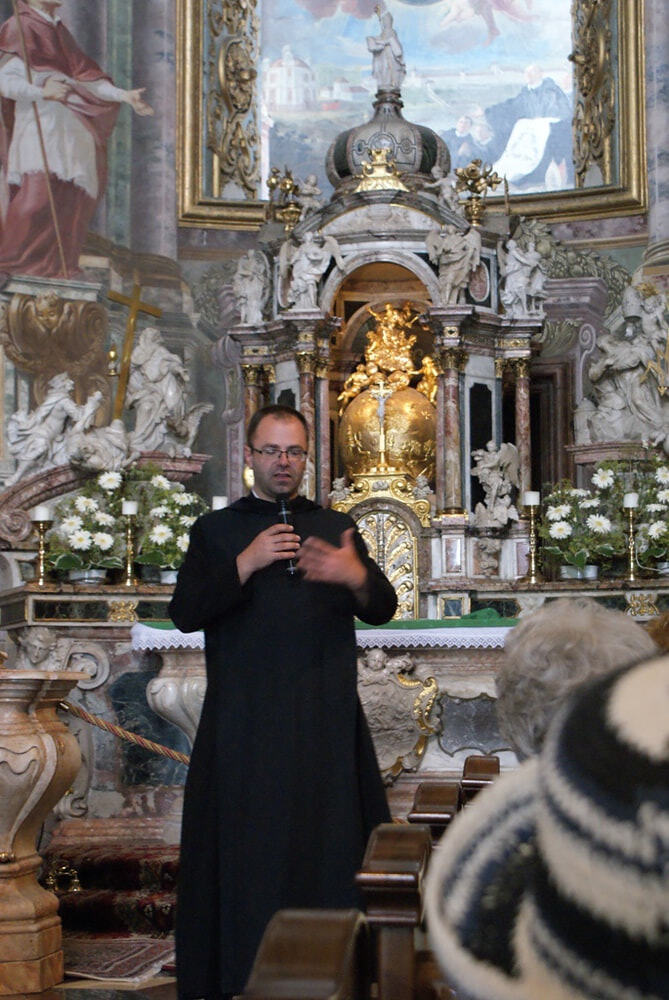 Nahe des Benediktinerklosters Lambach befindet sich am Ufer des Traun-Flusses die Dreifaltigkeitskirche von Stadl-Paura, die wir auf unserer Ausflugsroute besichtigten. Ein Beneditkiner-Mönch führte uns fachkundig durch die Kirche, die 1714 bis 1717 von Johann Michael Prunner ("Prunnerstift") aus Linz erbaut wurde. Anlass zum Bau war die Pest von 1713. Der Abt des Klosters Lambach Maximilian Pagl wollte ein Gotteshaus, das in seiner Ausstattung den EINEN und DREIFALTIGEN Gott versinnbilden sollte. Der Kreis (EIN Gott) und das Dreieck (Dreifaltigkeit) sind Symbole, durch die der Erbauer schon im Grundriß der Kirche seine grandiose Idee bekundete. In der Mitte eines jeden Dreiecks-Schenkels lädt ein Tor zum Betreten der Kirche ein.