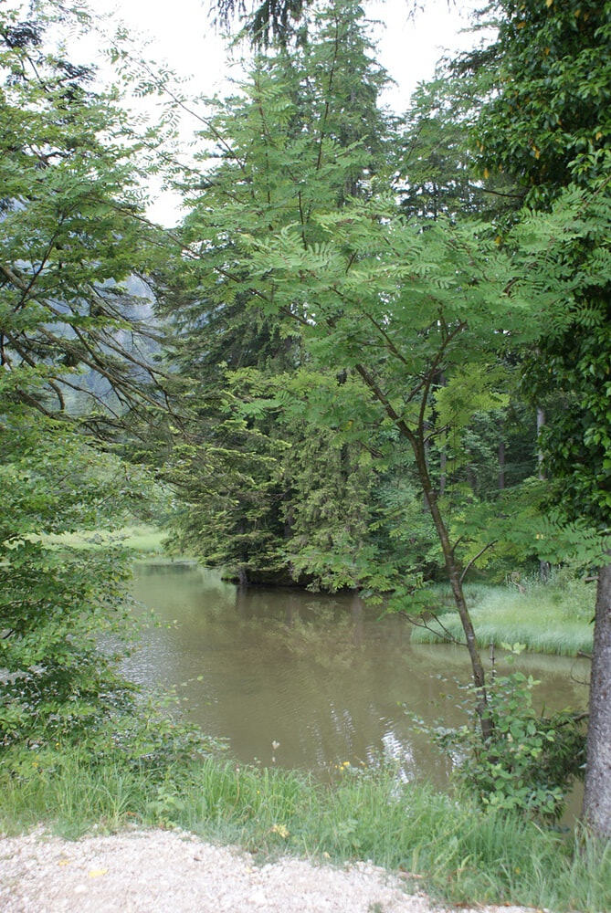 In der Nähe des Sees entspringt aus dem Höllengebirge der Aurachbach, der hier einst eine kleine Wasseransammlung bildete und bald vermoorte. Durch den Einbau einer Abflußsperre (Klausmauer) um 1716 wurde das Naturgewässer künstlich zu einem "Klausteich" aufgestaut. Dies diente dazu, um bei Bedarf durch Öffnung des Klaustores einen gewaltigen Wasserschwall zu erzeugen. Dadurch wurde eine Rinne gespeist, in der das gefällte Holz talaus bis zur nahen Aurach-Hauptklause geschwemmt werden konnte. Damals wurde viel Holz v.a. zum Salzsieden, aber auch zum Schiffsbau benötigt, und nicht zu unrecht sagte man: "Ohne Wald - kein Salz."