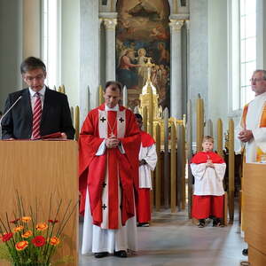 Die Kandidatinnen und Kandidaten hatten schon gespannt auf den Termin hingefiebert. Um 09:15 ging es mit dem gemeinsamen Einzug endlich los. Unter den Klängen des Liedes "Rückenwind" - das gleichzeitig das Thema der Firmung setzte - betraten die Firmlinge mit ihren Paten und Patinnen, gefolgt von den Ministrantinnen und Ministranten, Pfarrer Christian und dem Firmspender Kan. Dr. Martin Füreder die Familienkirche.