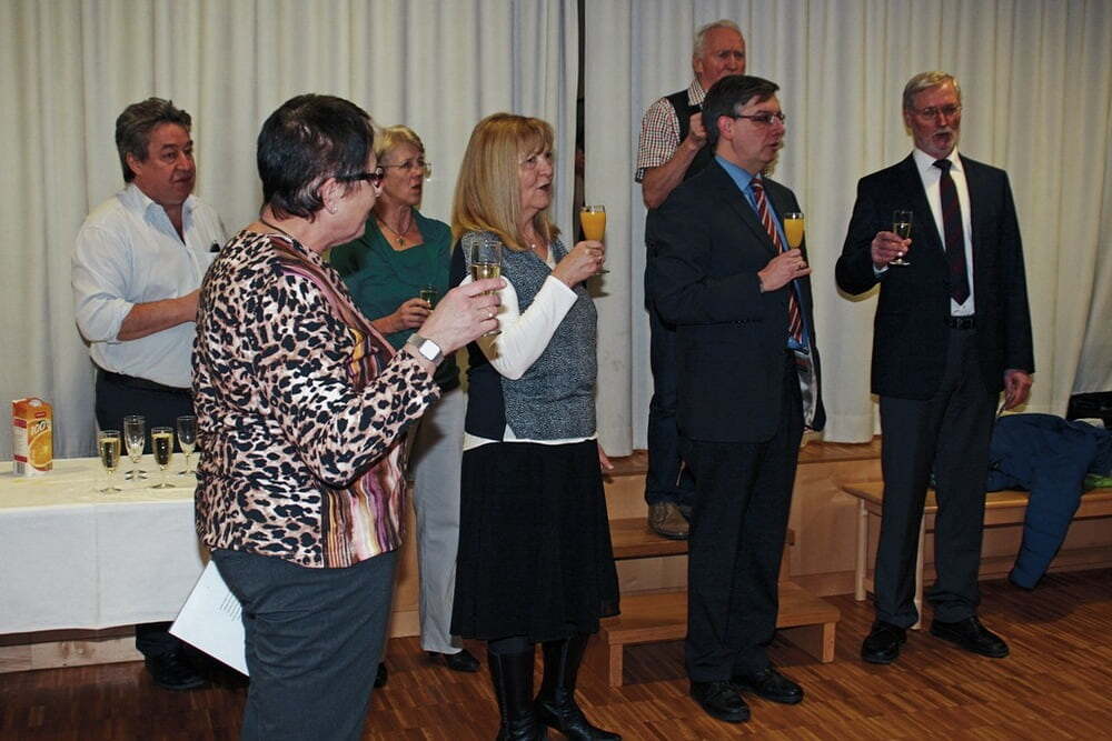 Im festlich geschmückten Pfarrsaal wurden wir vom Team des Pfarrcafés mit einem Sektempfang begrüßt.