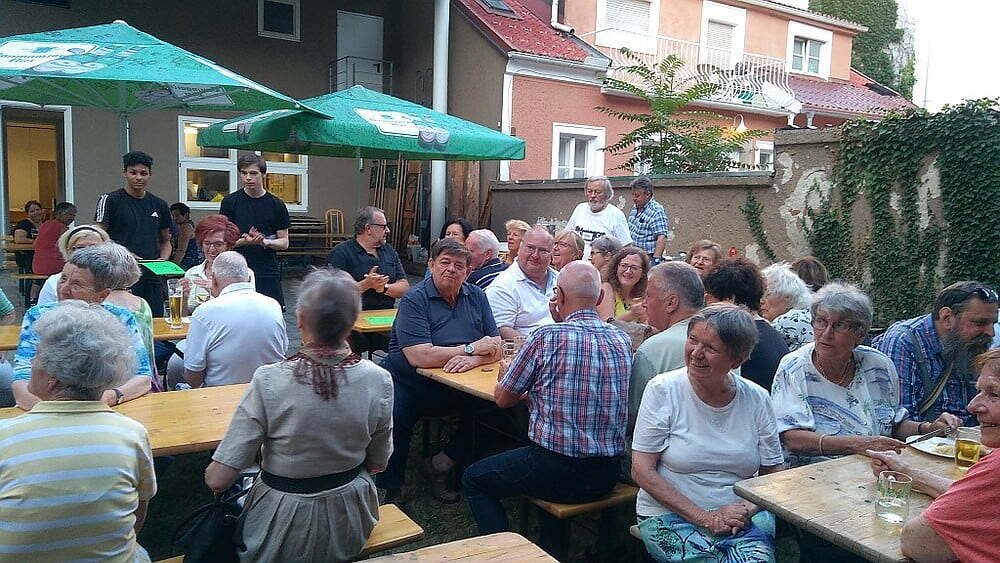 Im Anschluss an den Gottesdienst waren alle zum Frühschoppen mit Kinderprogramm - in den Pfarrgarten eingeladen.