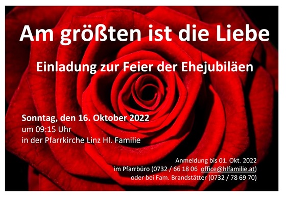 Der Dank gilt an dieser Stelle den Jubelpaaren, die gemeinsam mit uns gefeiert haben, dem Team rund um Familie Brandstätter, das den Gottesdienst vorbereitet hat, dem Team des Pfarrcafés, das die Agape im Anschluss an den Gottesdienst betreut hat, der Singgruppe, die den Gottesdienst musikalisch gestaltet hat, und allen, die in der einen oder anderen Form zum Gelingen des Festes beigetragen haben.
