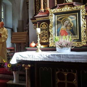 In der Kirche "Maria zum guten Rat" trafen wir auf weitere Mitglieder unserer Pfarrgemeinde, die mit Zug, Bus oder PKW nach Dörnbach kamen.