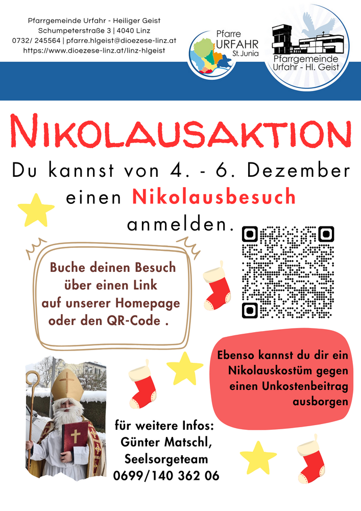 Kontakt: pfarre.hlgeist@dioezese-linz.at, 0699/140 362 06